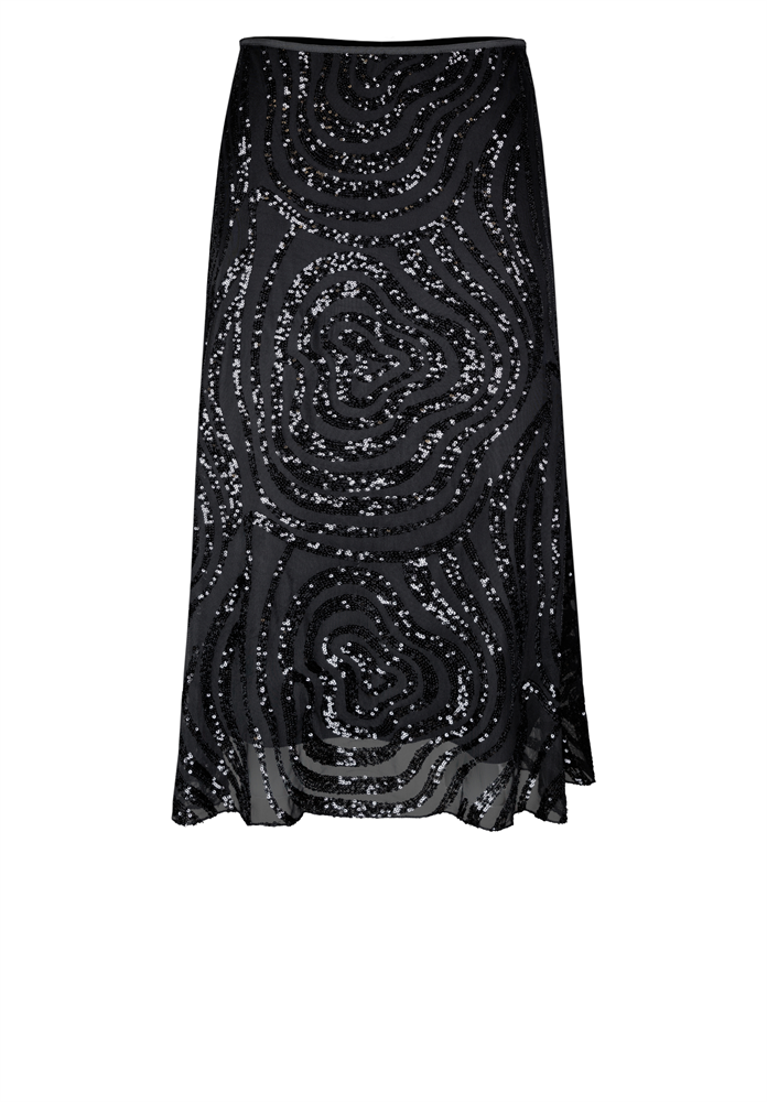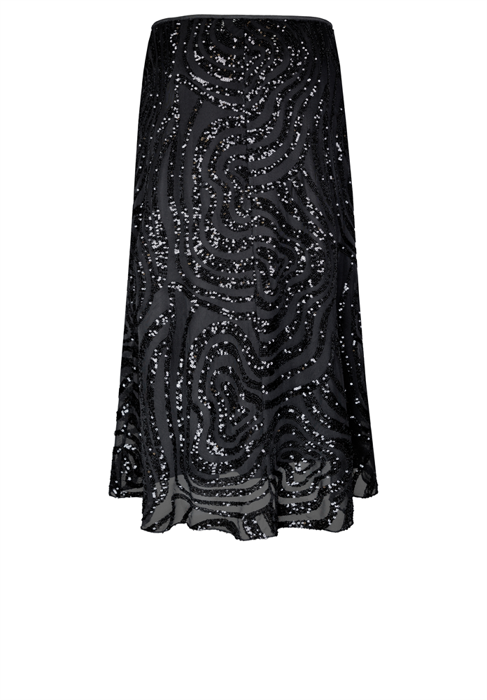 * Exklusiver Palliettenrock mit angenehmen Gummibund * Hochwertige Mesh-Qualität mit Elasthan, Innenfutter Viskose * Mit Hochwertigem, komfortablem Jersey-Futter * Lange, leicht ausgestellte Form * Bei Gr. 38: Länge ca.80 cm