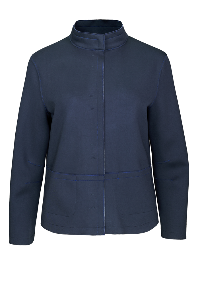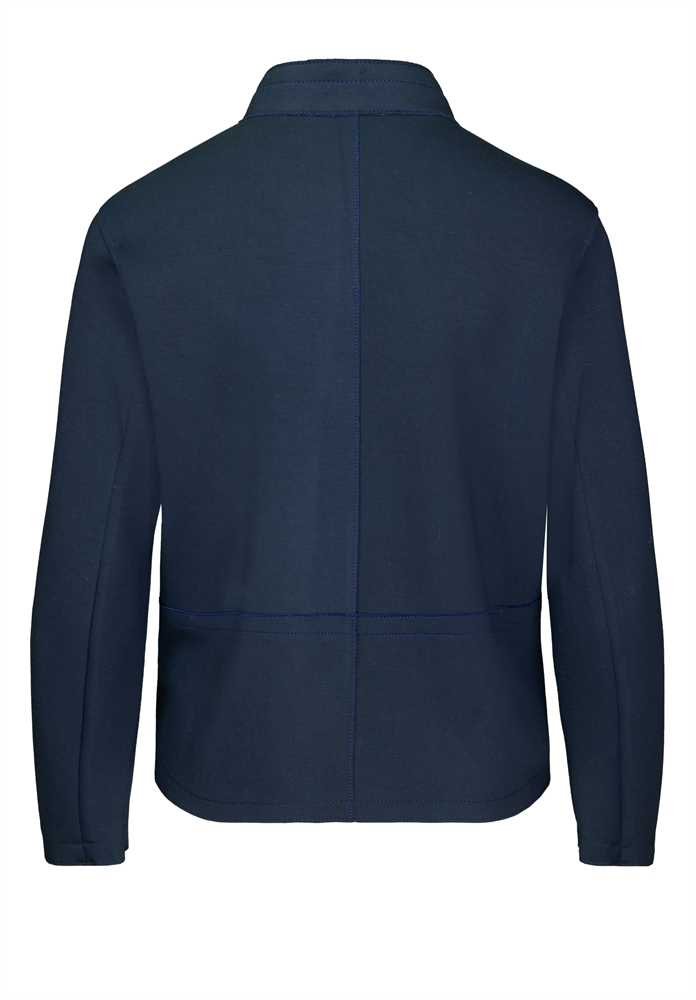 Unsere moderne Kurzjacke Renee im angesagten Doubleface-Look - ein stylisches Essential mit modischem Anspruch. Die kontrastige Innenseite, aufgesetzte Taschen und dekorative Ziernähte setzen raffinierte Akzente. Mit Stehkragen, Druckknöpfen und gerader, kurzer Passform überzeugt die Jacke durch Vielseitigkeit. Die softe Scuba-Qualität aus Viskosemix mit Elasthan bietet eine besonders angenehme Haptik. Ungefüttert und leicht - ideal für Übergangslooks, ob zu Jeans, Stoffhose oder Kleid kombiniert.