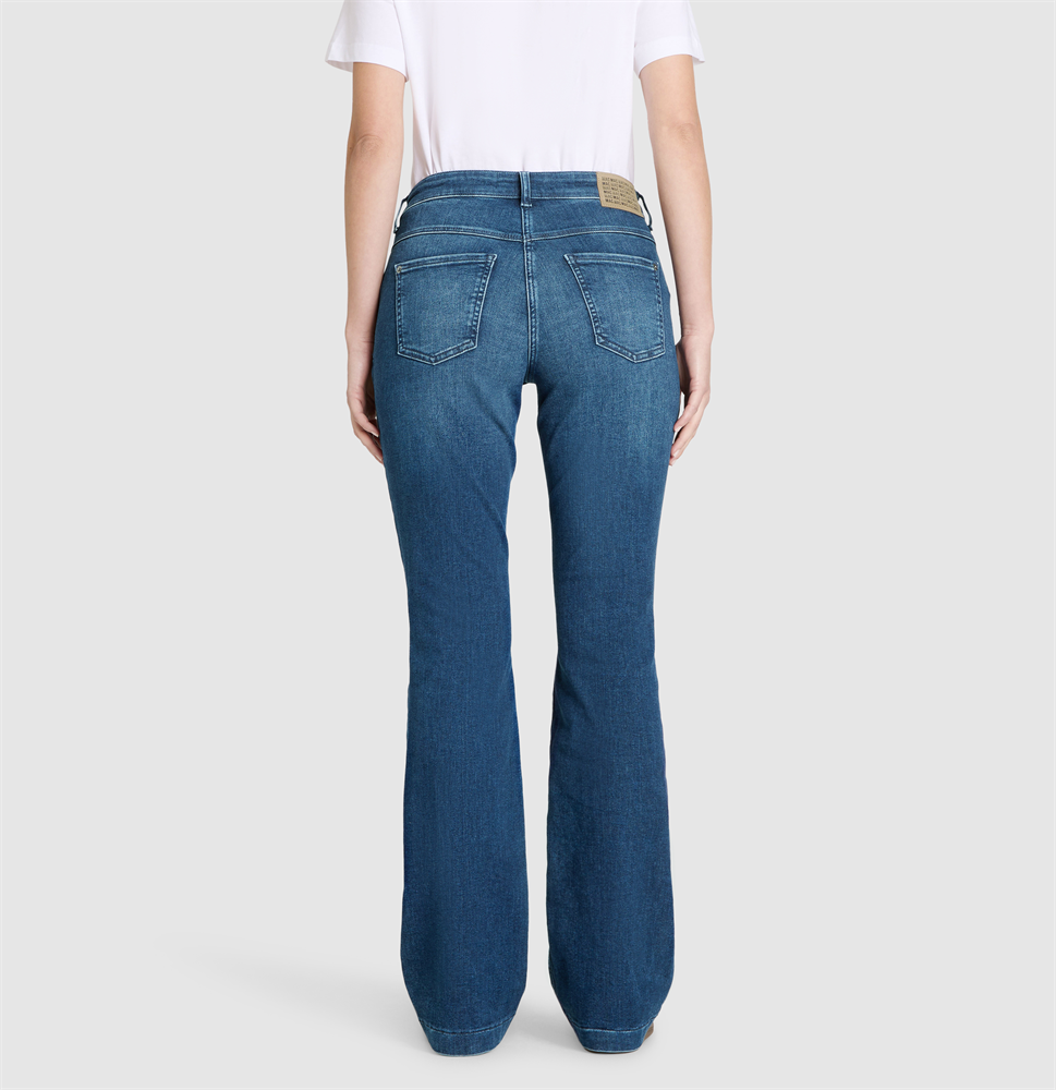 Flared Fit, Bootcut, gerades Bein, ausgestellter Saum, schlanke Silhouette, angezogene, erhöhte Leibhöhe, bequeme Taille, Five Pocket, Authentic Stretch Denim, sehr hochwertige, elastische Denim-Qualität, figurformender Shaping-Effekt, hervorragendes Rücksprung-Verhalten, authentische Optik, angenehmer Griff, hoher Tragekomfort, Das Model ist 1,75m groß und trägt die MAC Hosengröße 36, Fußweite bei Größe 36: 45cm