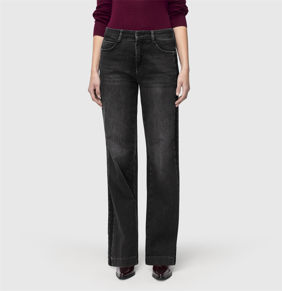Weite Vintage Jeans mit Galonstreifen.