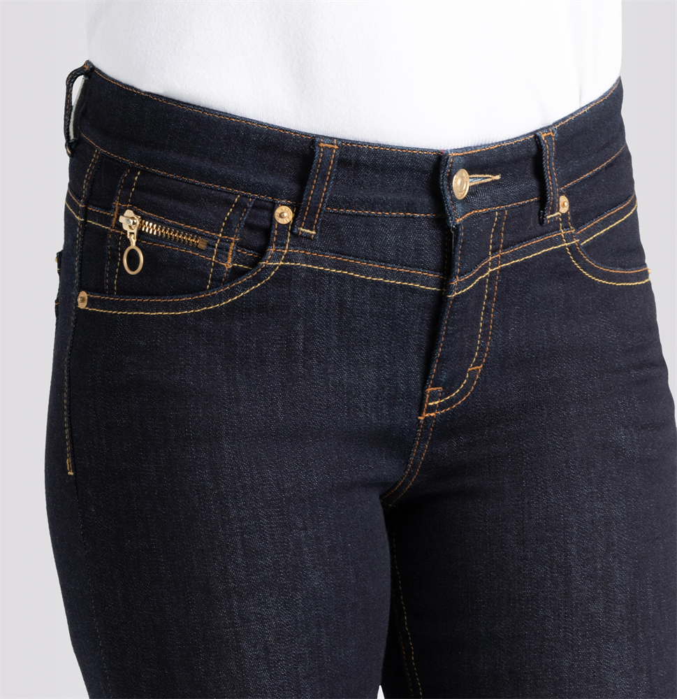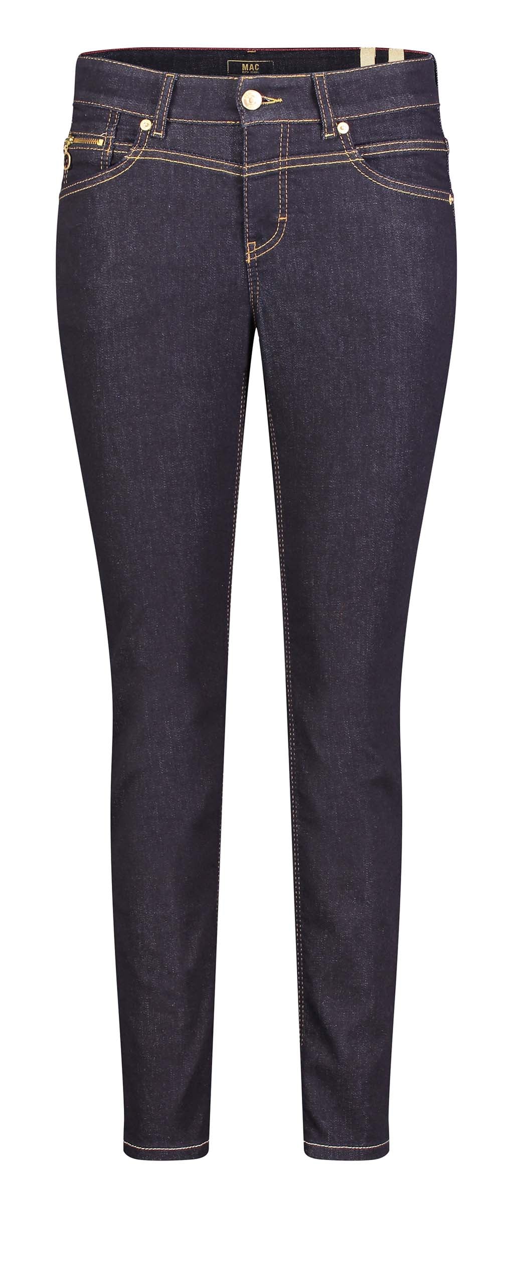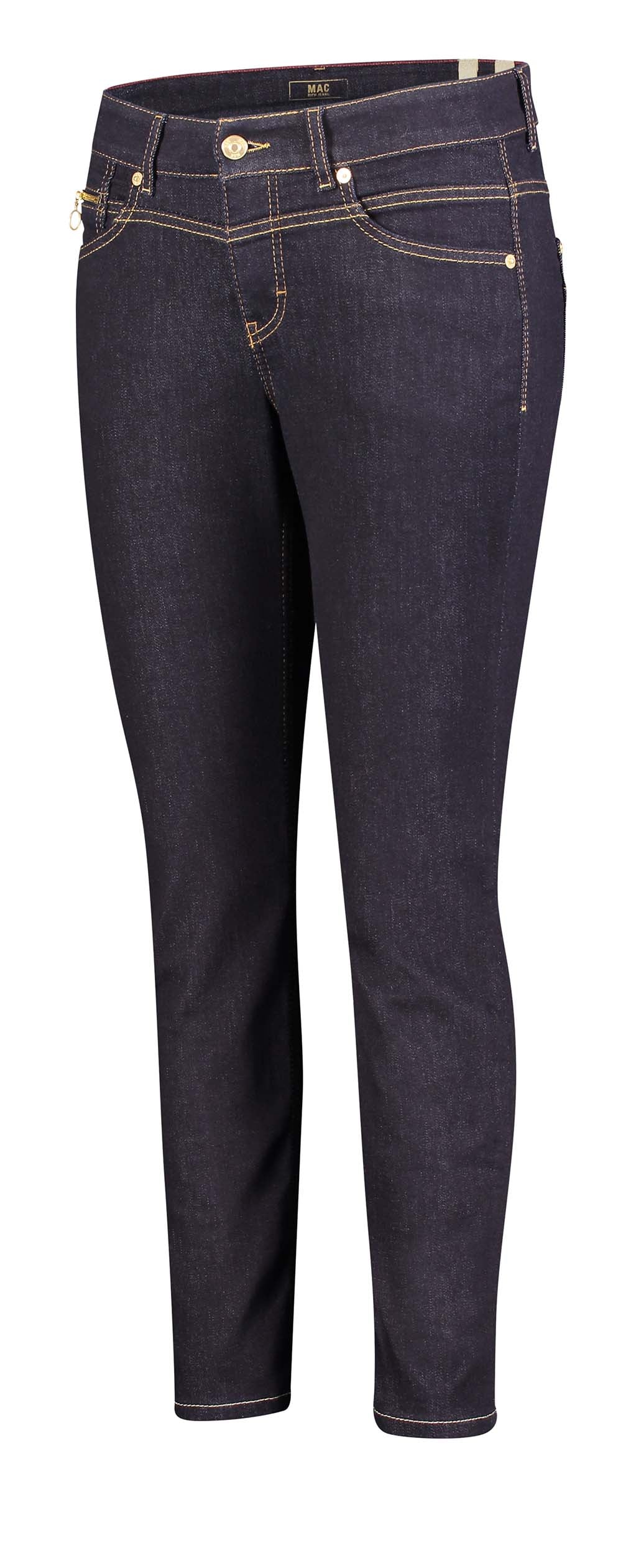 Straight Fit, gerades, schmales Bein, schlanke Silhouette, normale Leibhöhe, gerade Taille, Five Pocket, sportive Naht vorne, Reißverschluss-Detail an der Münztasche, umgeschlagener Saum, Cotton-Lyocell-Stretch Denim, sehr hautfreundliche und atmungsaktive Qualität durch Beimischung von nachhaltigem Lyocell, leichtgewichtige Ganzjahres-Qualität, softer Griff, Indigo Flow-Färbeverfahren für weniger Einsatz von Chemie und Farbstoff, authentische Optik, hoher Tragekomfort, Materialmix mit Recycled Cotton und Recycled Polyester, über Better Cotton gesourcte Baumwolle, Das Model ist 1,75m groß und trägt die MAC Hosengröße 36, Fußweite bei Größe 36: 30cm