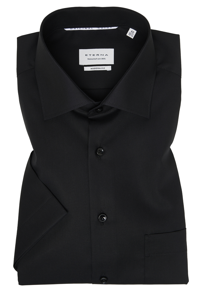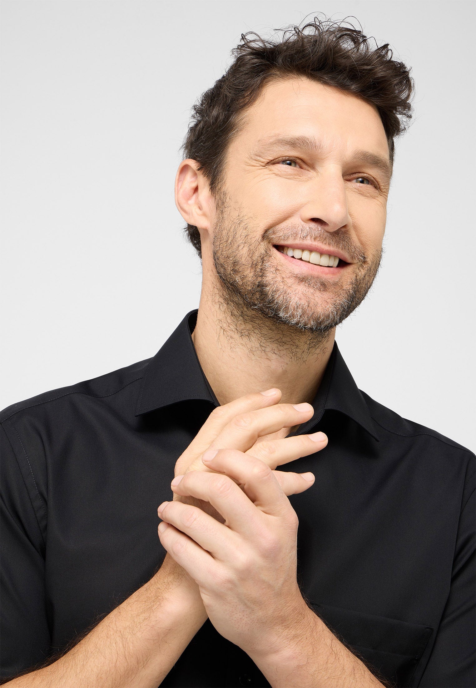 Gefertigt wurde dieses unifarbene, knitterfreie und atmungsaktive MODERN FIT Kurzarmhemd mit Gala-Kent-Kragen und Brusttasche.