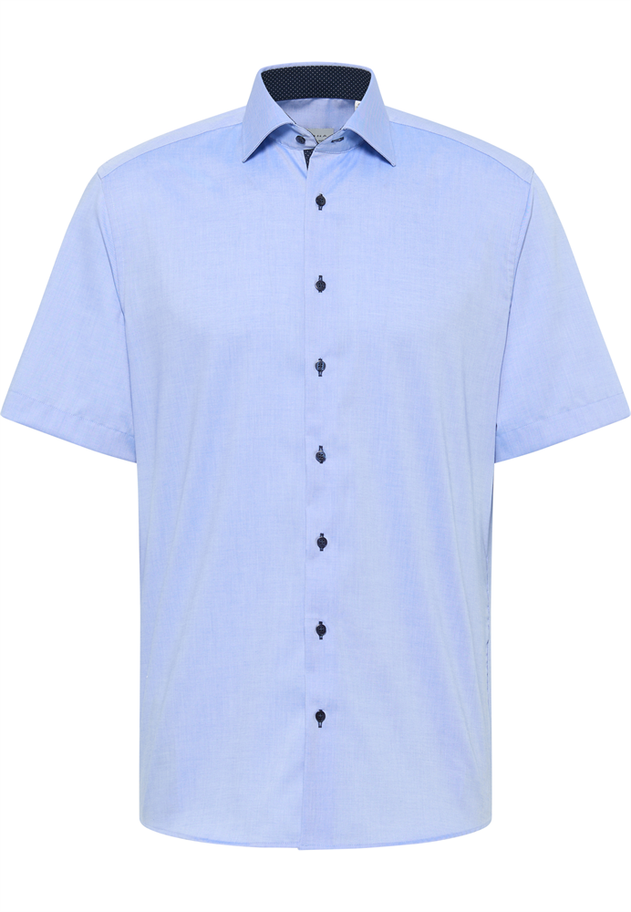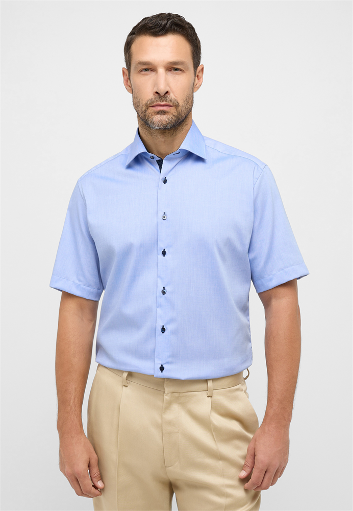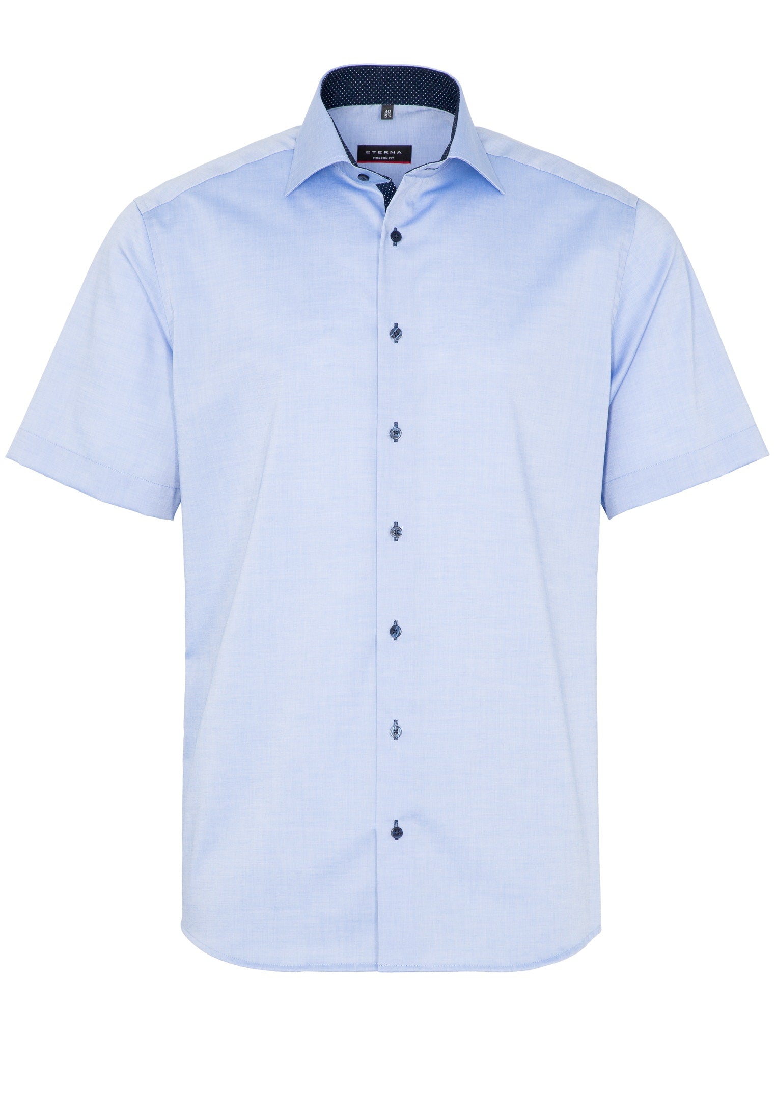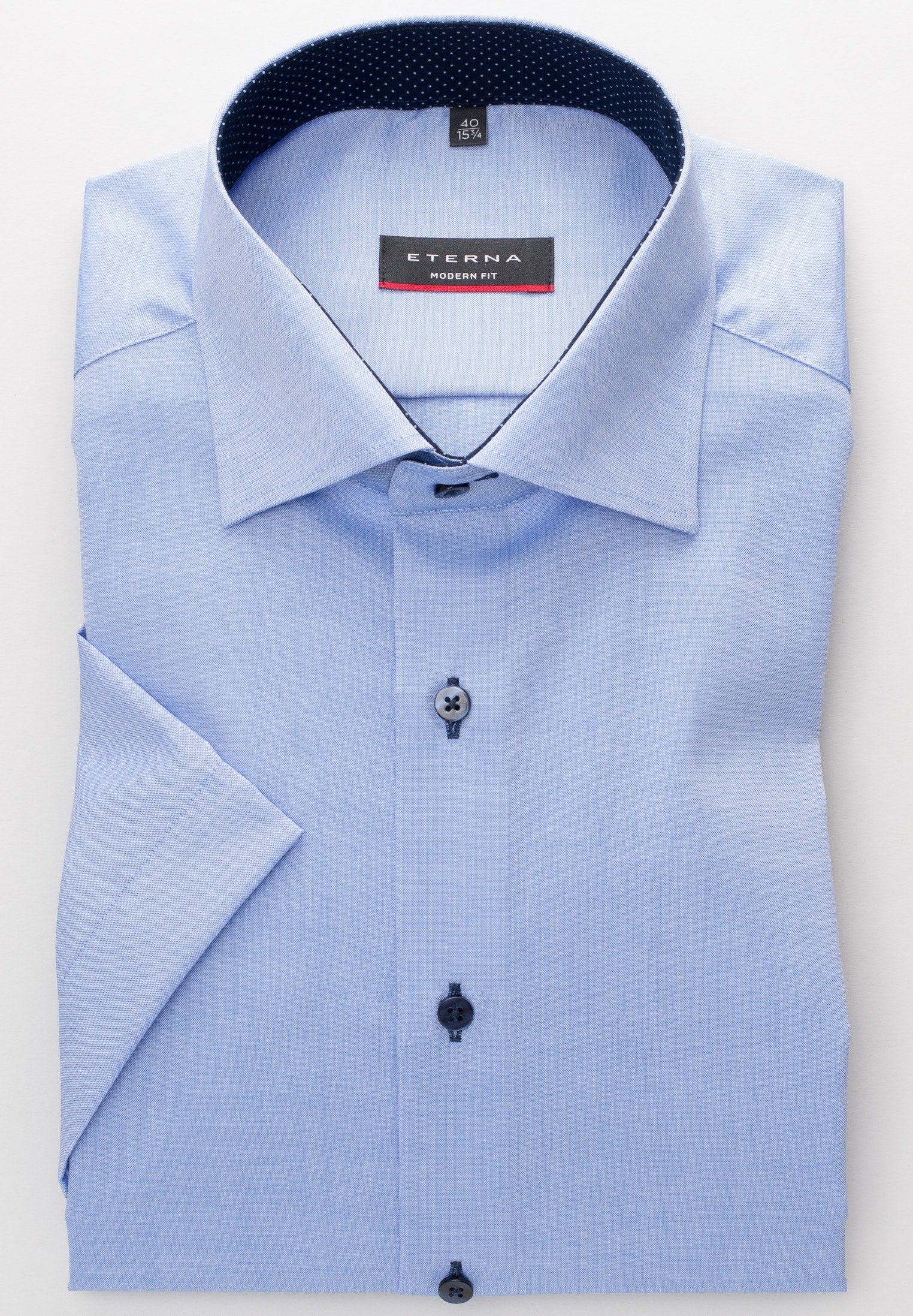 Ein unifarbenes Kurzarmhemd kommt nie aus der Mode und sollte sich in jedem gut sortierten Kleiderschrank befinden. Holen Sie sich mit diesem Herrenoberhemd mit Classic Kent-Kragen einen modernen aber zeitlosen Hemden-Klassiker ins Haus.Ein besonderer Hingucker ist der Kontrasteinsatz am Krageninnensteg und das Kontrastband im Vorderteil des Hemdes.Gefertigt ist dieses MODERN FIT Hemd aus 100% feinster Baumwolle (bügelfrei) und bietet dadurch einen erstklassigen Tragekomfort.Bestellen Sie noch heute dieses Pinpoint-Hemd in unserem Online-Shop und werten Sie Ihre Garderobe stilsicher auf.