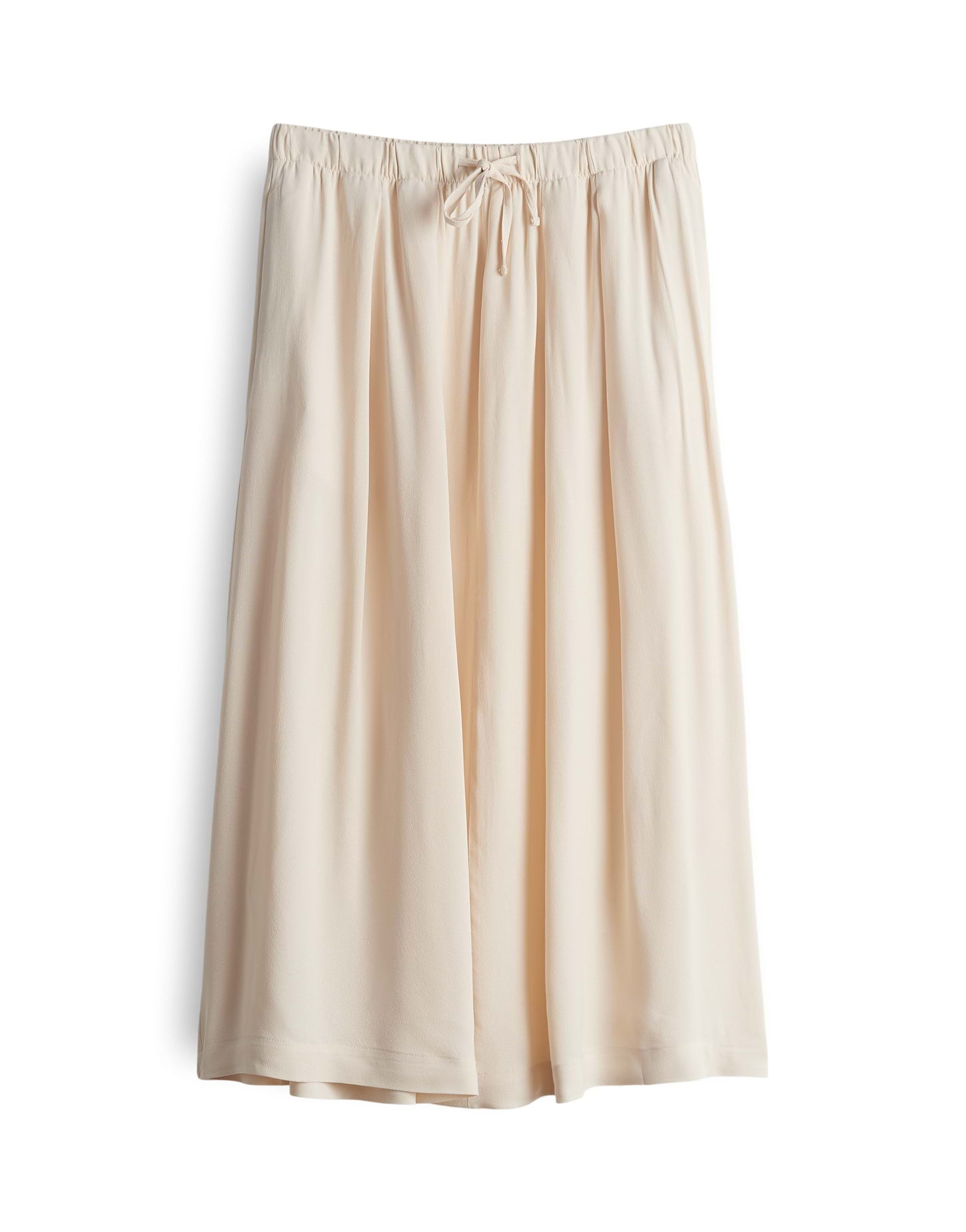 lockere Passform, A-Linie, Midi-Länge, hintere Länge ca. 81 cm in Größe 36, Model Größe 177 cm ? trägt Größe 36, Webware, dezente Struktur, leichter Stoff, fließender Fall, matter Glanz in der Oberfläche, Futter: Viskose Mix , elastischer Gummibund, Kordel zum Binden, Unterrock, Falten unter dem Gummibund