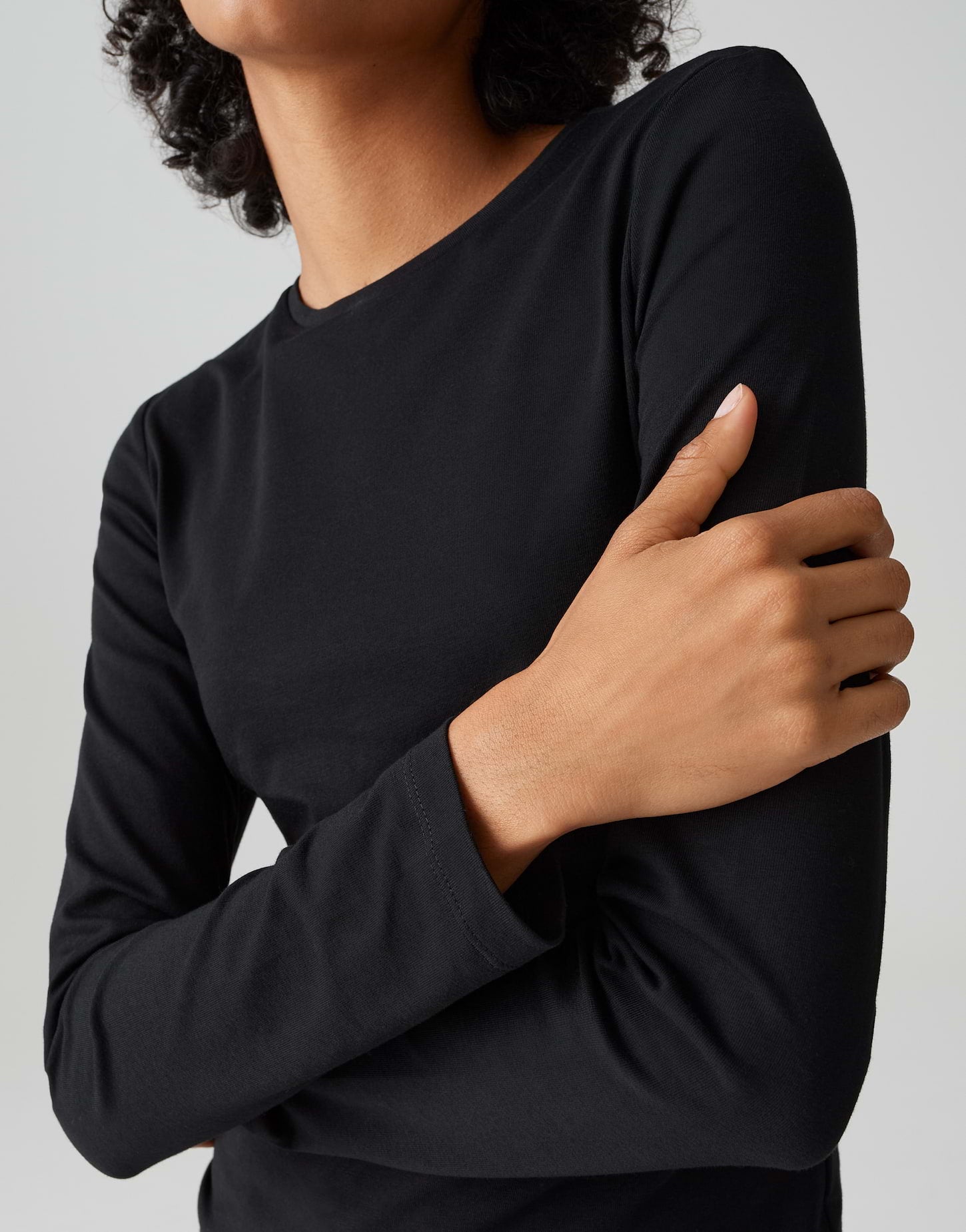 schmale Passform, leicht tailliert geschnitten, Langarm, Rundhalsausschnitt, Rückenlänge ca. 64 cm bei Größe 36 | ca. 68 cm bei Größe 40, Model Größe 177cm ? trägt Größe 36, Jersey, weicher Griff, formstabil, elastischer Stoff