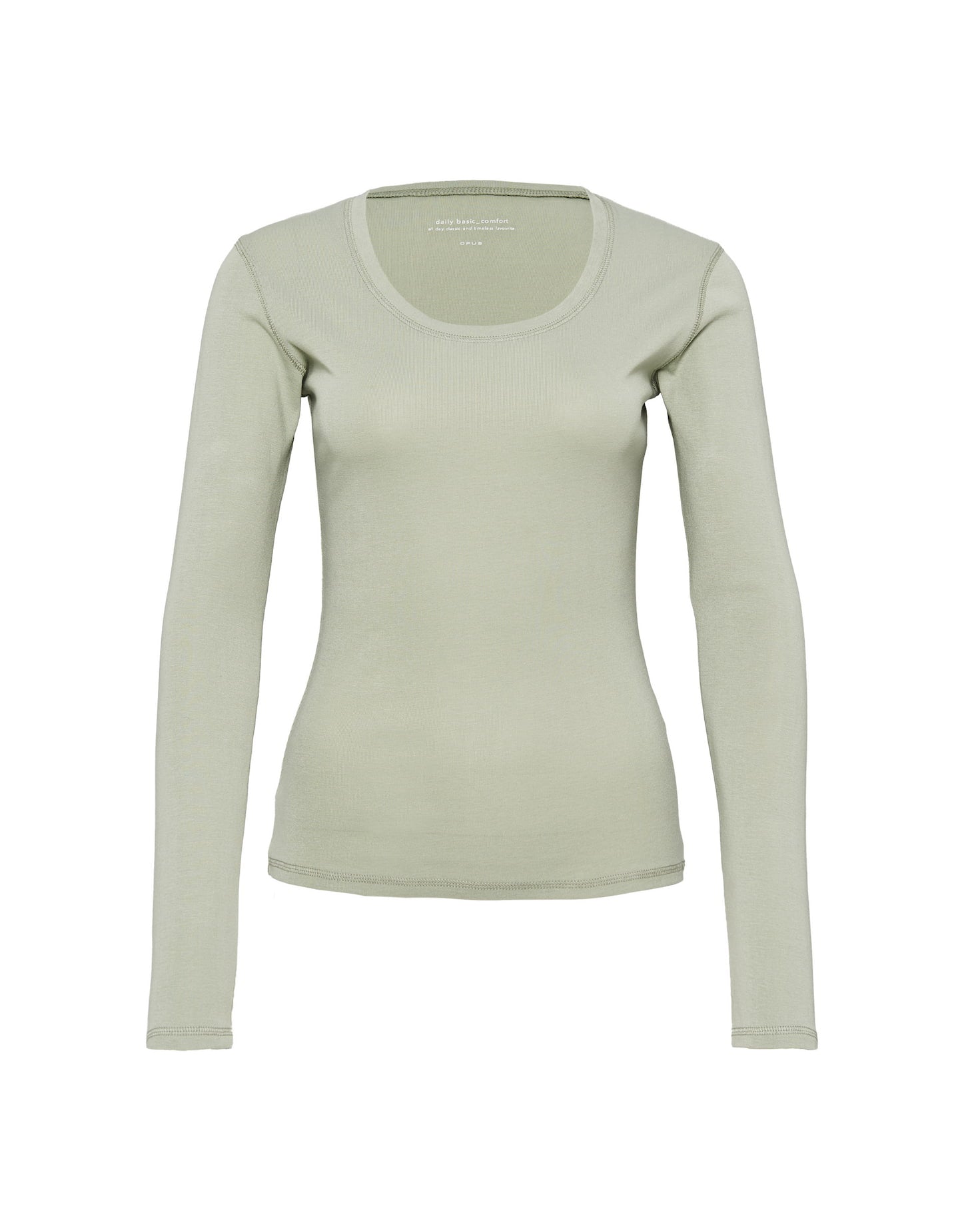 schmale Passform, weiter Rundhalsausschnitt, Langarm, Rückenlänge ca. 62 cm bei Größe 36, Model Größe 178 cm ? trägt Größe 36, BCI Cotton Mix, weicher Griff, elastischer Stoff