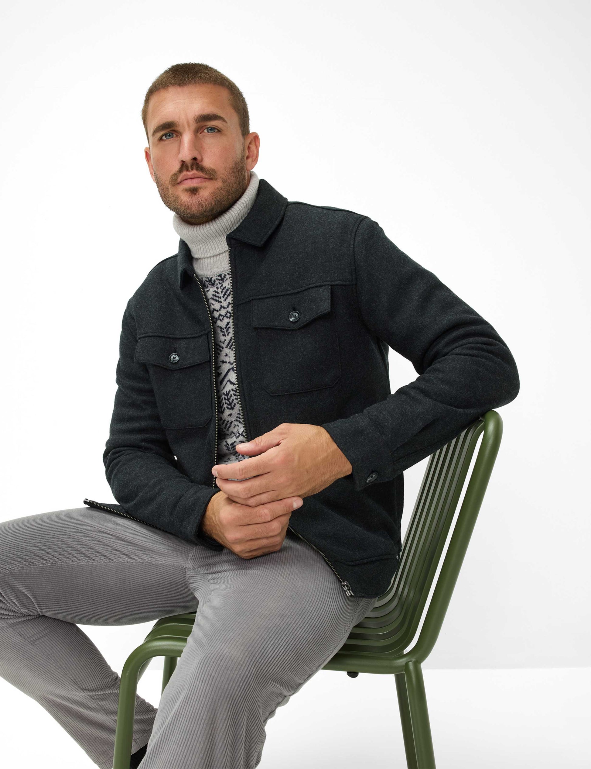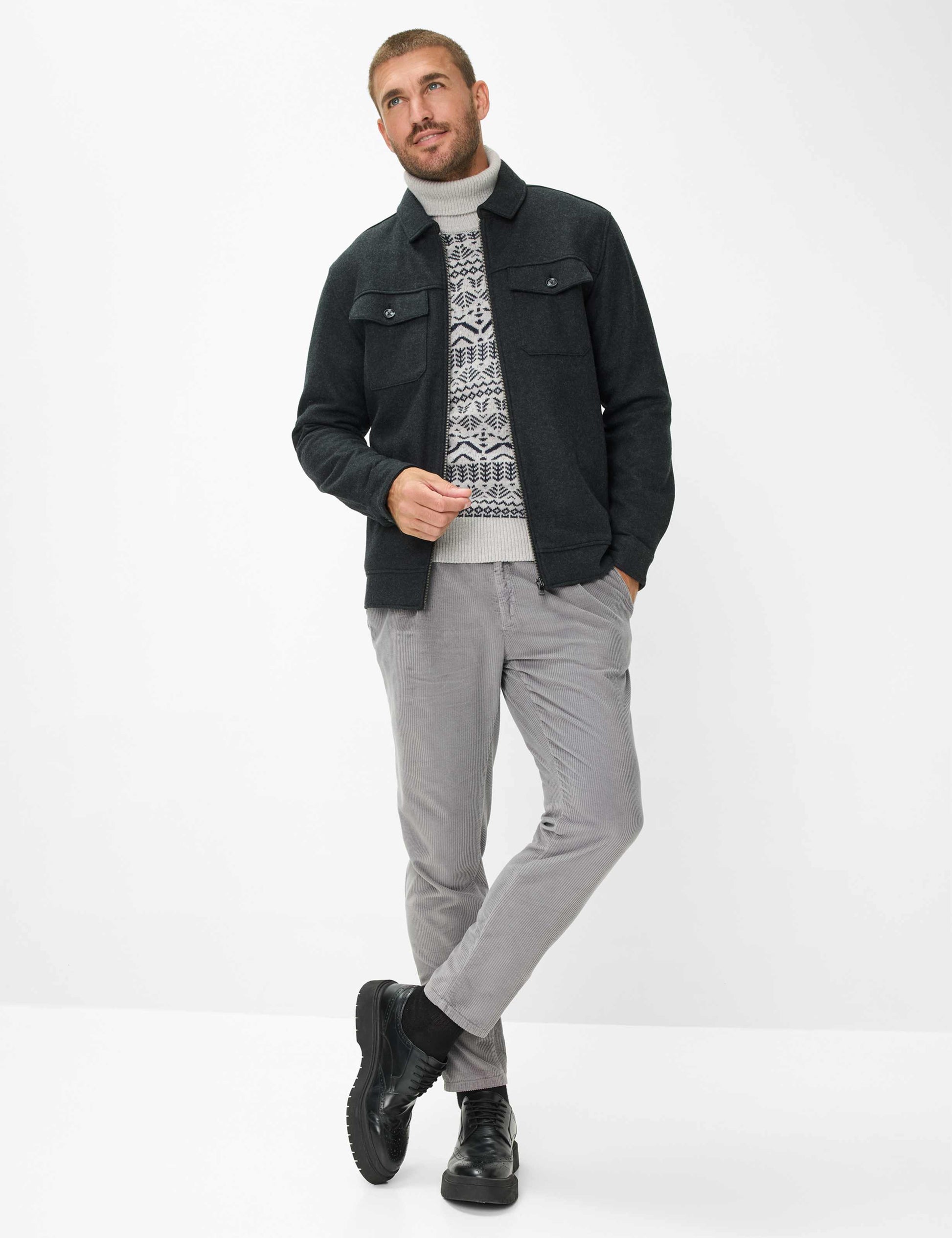 Das Overshirt im STYLE SANTIAGO ist ein echtes Trend-Piece und unverzichtbar für Herren, die Wert auf zeitgemäßen Stil legen. Overshirts sind aktuell aus keiner Garderobe wegzudenken und vereinen die Lässigkeit eines Hemdes mit der Funktionalität einer Jacke. Mit gerader Form und praktischem Reißverschluss überzeugt das Design durch schlichte Eleganz und moderne Vielseitigkeit. Aufgesetzte Brusttaschen mit Patte und Knopf sowie Paspeltaschen setzen stilvolle Akzente und bieten zudem funktionale Details. Der klassische Auslegekragen ergänzt das zeitlose Erscheinungsbild perfekt. Gefertigt aus einem hochwertigen Materialmix aus Polyester, Wolle und Viskose vereint dieses Overshirt die wärmenden Eigenschaften von Wolle, die pflegeleichten Vorzüge von Polyester und die geschmeidige Weichheit von Viskose. Der Flanell-Stoff sorgt zusätzlich für ein angenehmes Tragegefühl und eine außergewöhnliche Haptik, die insbesondere in der kühleren Jahreszeit überzeugt. Dieses Modell ist die ideale Wahl
