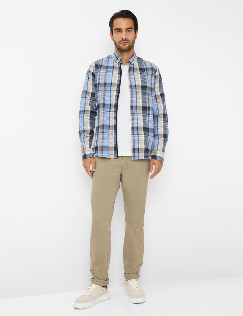 Markante Farben und ein lebhaftes Karo machen das Hemd im Style DANIEL zu einem souveränen Herbst-/Winter-Begleiter für Männer mit Stil. Der klassische Button Down-Kragen sowie die aufgesetzte Brusttasche fügen sich harmonisch in das authentische Design des Herrenhemdes ein. Dank leicht taillierter Silhouette entsteht eine maskuline Passform, die Bewegungsfreiheit und Formgefühl vereint. Das großflächige Karomuster verleiht dem Hemd eine ausdrucksstarke Optik, die sowohl lässig als auch gepflegt kombiniert werden kann. Haptisch überzeugt das Material aus reiner Baumwolle durch seine angenehm weiche Oberfläche. Die Leichtflanell-Qualität sorgt für ein behagliches Tragegefühl – wärmend, hautfreundlich und besonders komfortabel. Damit eignet sich das Hemd ideal für stilvolle Freizeitlooks in der kühleren Jahreszeit.