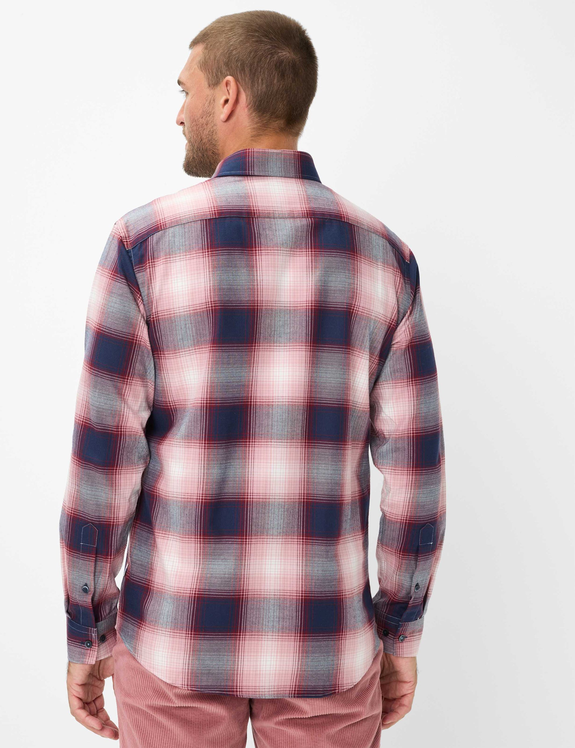 Das Hemd im STYLE DANIEL bringt modernen Casual-Charme in Ihren Kleiderschrank. Mit seiner klaren, leicht taillierten Passform setzt es auf eine smarte Silhouette, die lässig wirkt und dennoch gepflegt aussieht. Der Button-Down-Kragen sorgt für einen souveränen Sitz und verleiht dem Look eine sportlich-elegante Note. Praktische Details wie die aufgesetzte Brusttasche und die durchgehende Knopfleiste mit markanten Knöpfen runden das Design ab. Die großflächige Karostruktur verleiht dem Hemd einen zeitgemäßen, urbanen Charakter – perfekt für den modernen Alltag. Gefertigt aus 100 % Baumwolle in softer Flanell-Qualität, bietet dieses Hemd ein besonders angenehmes Tragegefühl. Der Stoff ist wärmend, atmungsaktiv und weich zugleich – ideal für die Übergangszeit und kühle Tage. Robust verarbeitet, bleibt es formstabil und pflegeleicht. Ob offen über einem T-Shirt getragen oder klassisch geschlossen: Dieses Hemd ist ein vielseitiger Allrounder.