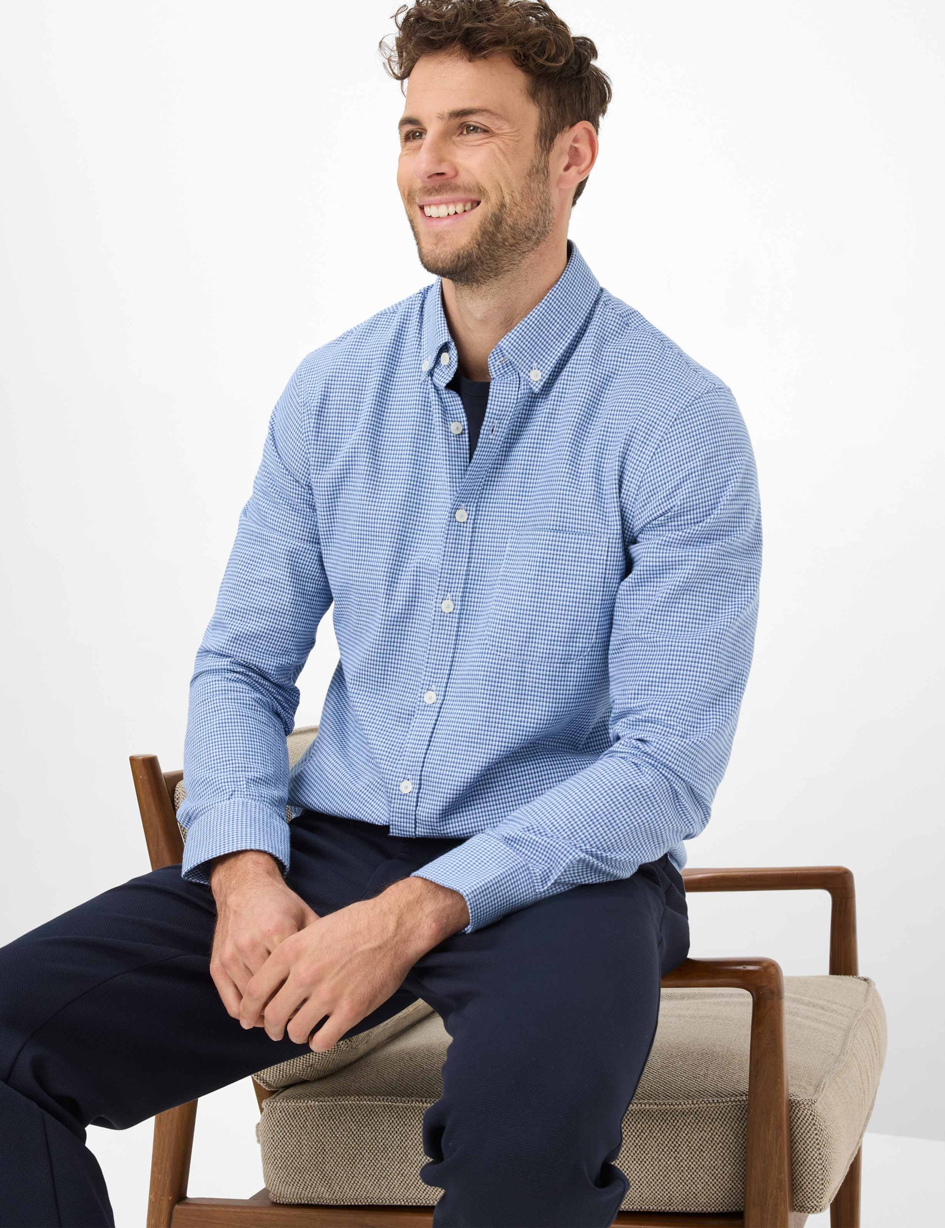 An kalten Tagen zeigt sich das Hemd im Style DANIEL als stilvolles Essential für den modernen Mann. Mit seinem Button Down-Kragen, der leicht taillierten Passform und der aufgesetzten Brusttasche wirkt es gepflegt und zugleich entspannt. Das feine Karomuster in klassischer Farbgebung setzt dezente Akzente in der Optik. So lässt sich das Herrenhemd mühelos sowohl zu Jeans als auch zu smarten Chinos kombinieren. Die Flanell-Qualität aus reiner Baumwolle überzeugt mit einem leichten Tragegefühl und zugleich angenehmer Wärme. Für ein softes Handgefühl und ein gepflegtes Erscheinungsbild sorgt die gebürstete Oberfläche des Hemdes. So entsteht ein perfekter Mix aus Stil, Bequemlichkeit und Funktion – ideal für den gepflegten Winter-Look mit lässiger Eleganz.