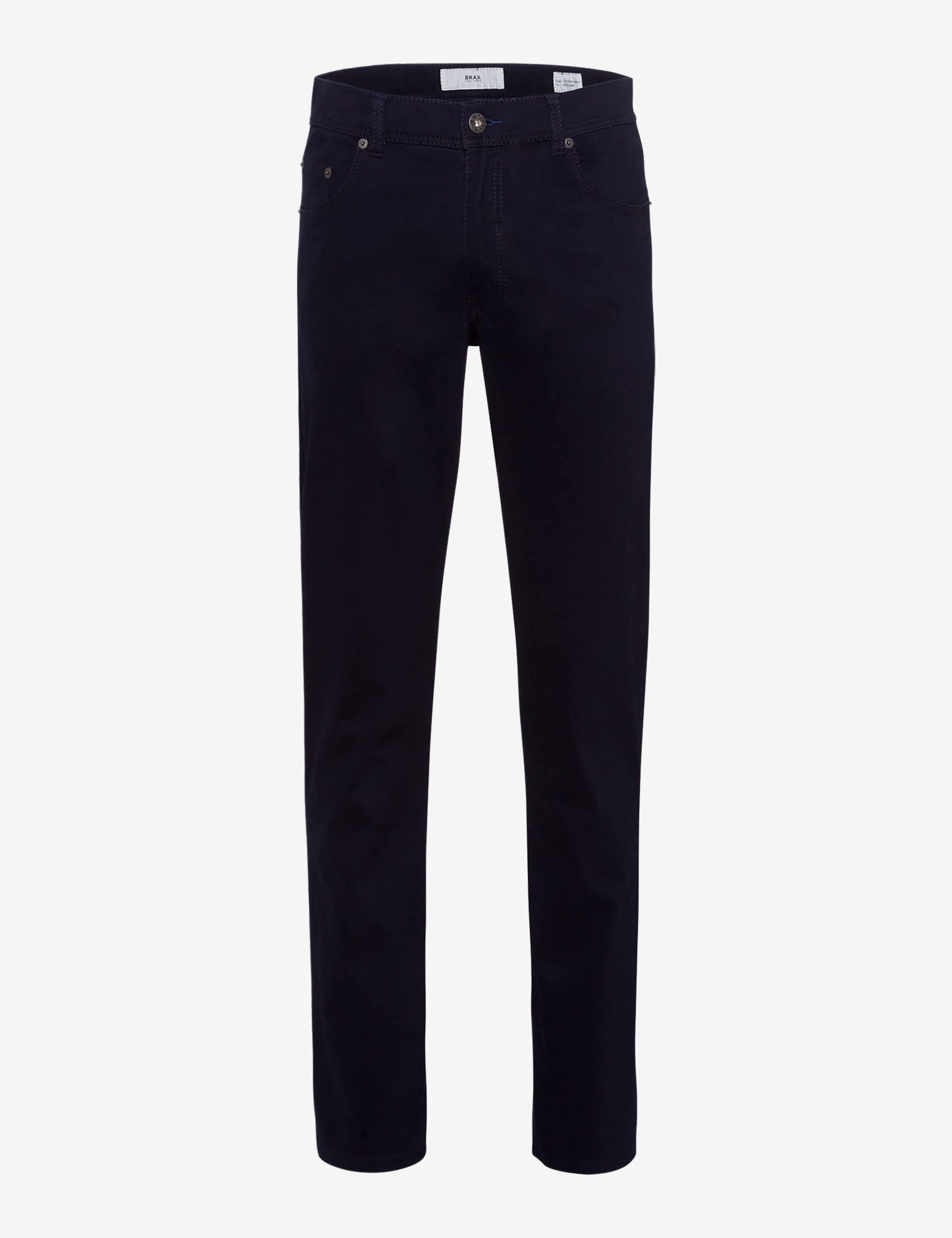 Schwarz bleibt Schwarz - Blau bleibt Blau. Endlich gibt es eine Baumwollhose, die auch nach mehreren Wäschen nicht verblasst und eine innovative Satinware mit einem einzigartigen Färbeverfahren vereint. Mit den sehr feinen Garnen des hochwertigen Cotton-Satin-Stretchs wird diese moderne Five-Pocket-Hose zu einem edlen Ganzjahresartikel. Dabei überzeugt diese Herrenhose neben den Permafarben mit einem Novum an Feinheit, Leichtigkeit und optimaler Passform. Exklusiv bei BRAX. Form: