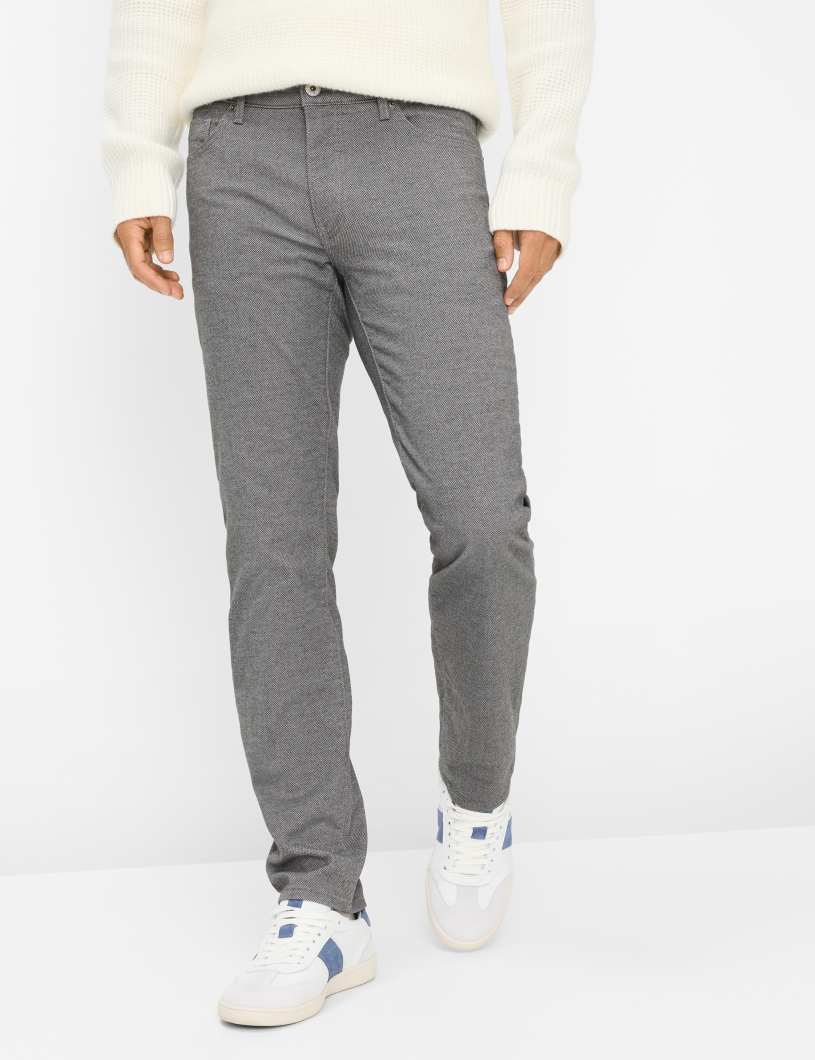 Die Hose im STYLE CADIZ interpretiert klassische Five-Pocket-Elemente neu und präsentiert sich mit einer fein strukturierten Oberfläche, die dem Look Tiefe und Charakter verleiht. Die gerade Silhouette mit normaler Leibhöhe schafft eine klare, maskuline Linie, während Details wie aufgesetzte Gesäßtaschen, Coinpockets sowie der Bund mit Knopf- und Reißverschluss für eine moderne Umsetzung des Klassikers sorgen. Besonderes Highlight ist das sogenannte Wool-Look-Material: Es vereint die elegante Optik hochwertiger Wollstoffe mit dem angenehmen Tragegefühl einer Baumwollhose. Die innovative Mischung aus Baumwolle, Polyester, Viskose und Elasthan sorgt nicht nur für eine dezente Struktur mit edler Anmutung, sondern auch für angenehme Elastizität und Formbeständigkeit – ideal für stilbewusste Männer, die Wert auf Komfort und gepflegte Lässigkeit legen. Eine Hose, die souverän zwischen smart und casual balanciert – und dabei durch ihre stoffliche Raffinesse überzeugt.