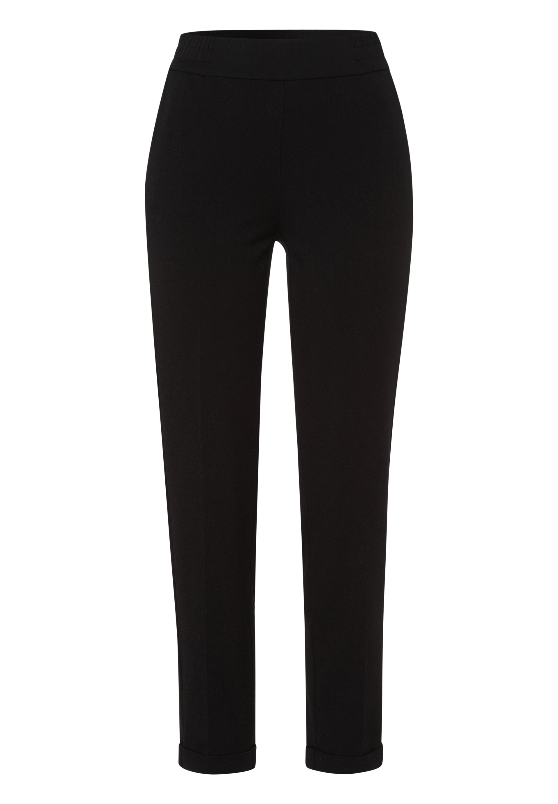 Diese Hose überzeugt mit einem eleganten Schnitt und einem elastischen Bund für optimalen Tragekomfort. Die schmale Passform und der dezente Saumaufschlag machen sie vielseitig kombinierbar – ideal für Büro und Freizeit.