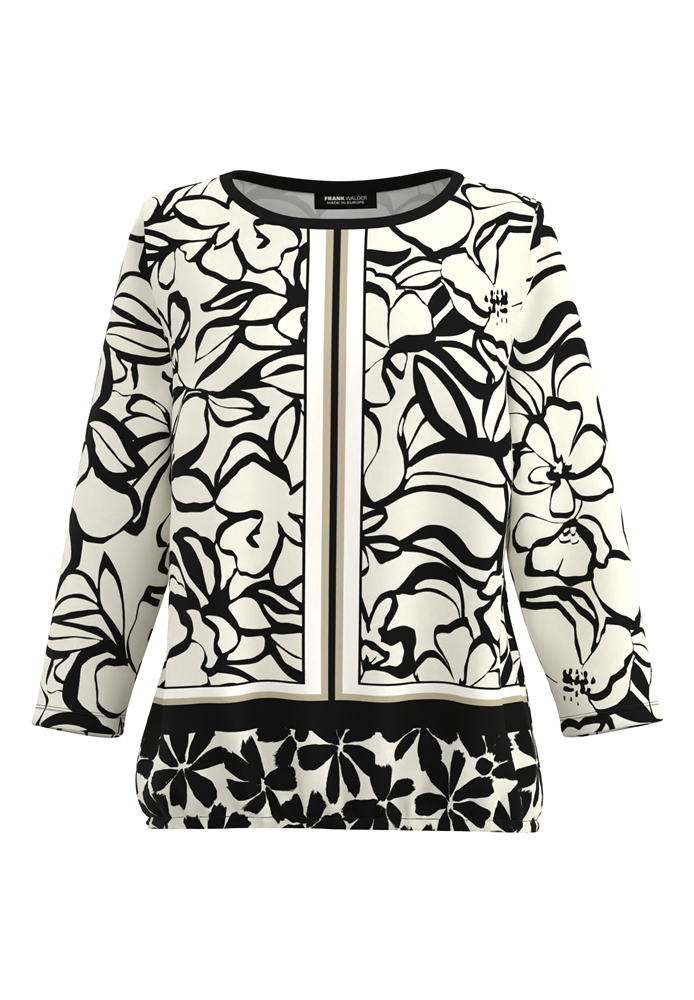 Dieses hübsche Blusenshirt ist figurfreundlich geschnitten und präsentiert sich in einem sehr stilvollen Print. Den Rundhalsausschnitt ziert ein dekoratives Piping. Gefertigt aus Ecovero-Viskose, mit 3/4 Armlänge, blickdichtem Vorderteil und Saumgummi für einen bequemen Sitz.