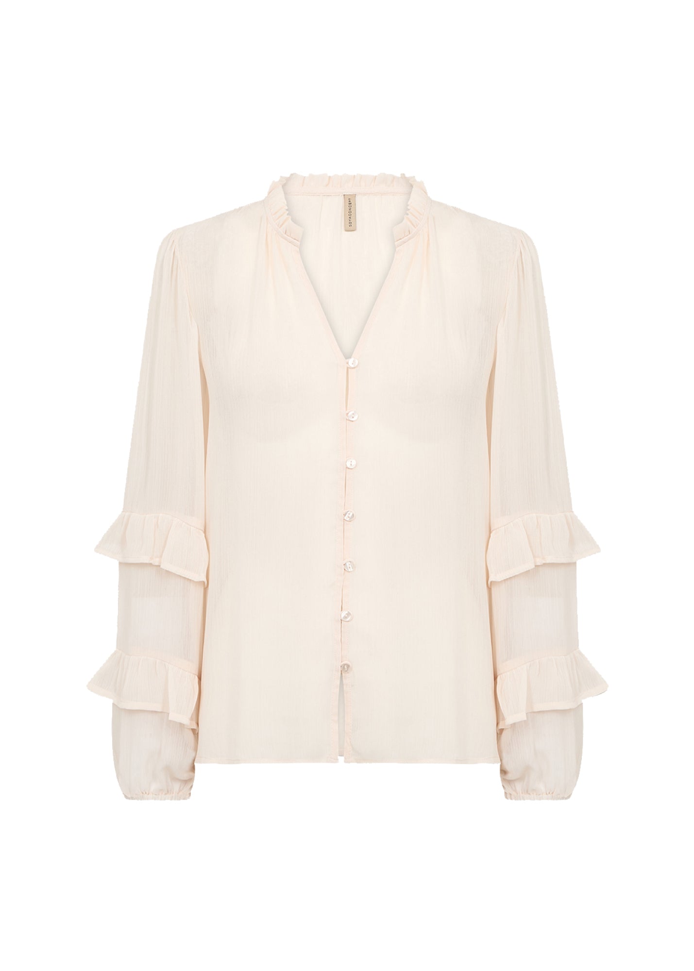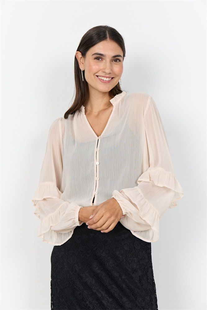 Das SC-NAIA 4 Hemd ist aus 100 % recyceltem Polyester gefertigt. Das Hemd hat einen zarten Rüschenkragen, eine geknöpfte Vorderseite und mehrlagige Ärmel für einen eleganten Touch. Kombiniere es mit einer maßgeschneiderten Hose oder einem fließenden Rock für einen zeitlosen Look.