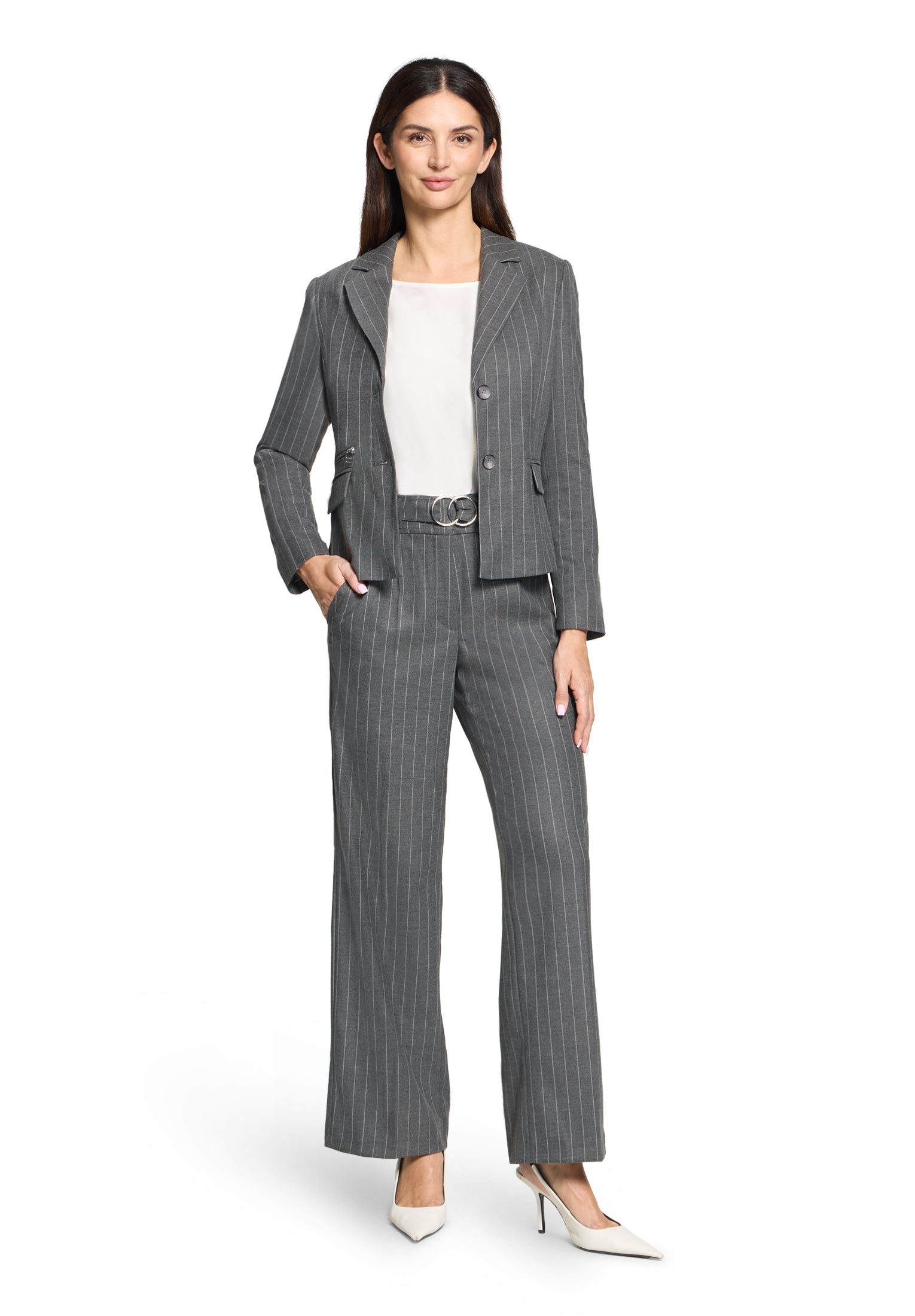 * Passform: Tailliert * Gesamtlänge: 60 cm * Ärmellänge: Langarm * Kragenform: Reverskragen * Tasche: Pattentaschen * Verschluss: Knopf * Muster: Streifen * Futter: 100% Polyester
