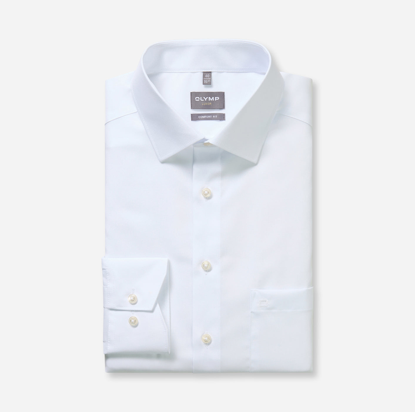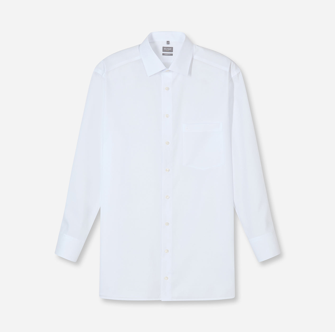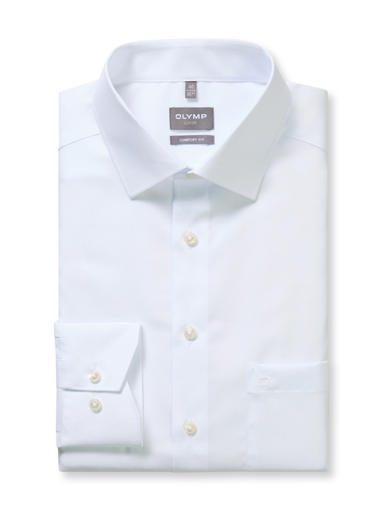 Mehr Souveränität durch faltenfreien Auftritt: Das exklusive Businesshemd OLYMP Luxor comfort fit mit grenzenloser bügel- und Knitterfreiheit. Auch bei hitzigen Debatten angenehmer Tragekomfort dank atmungsaktiver und hautsympathischer Stoffe. Der unifarbene Oberstoff in Weiß mit elegantem New-Kent-Kragen sowie verstellbaren Kombimanschetten machen dieses Hemd vielseitig kombinierbar und zeitlos schick. Business im OLYMP.