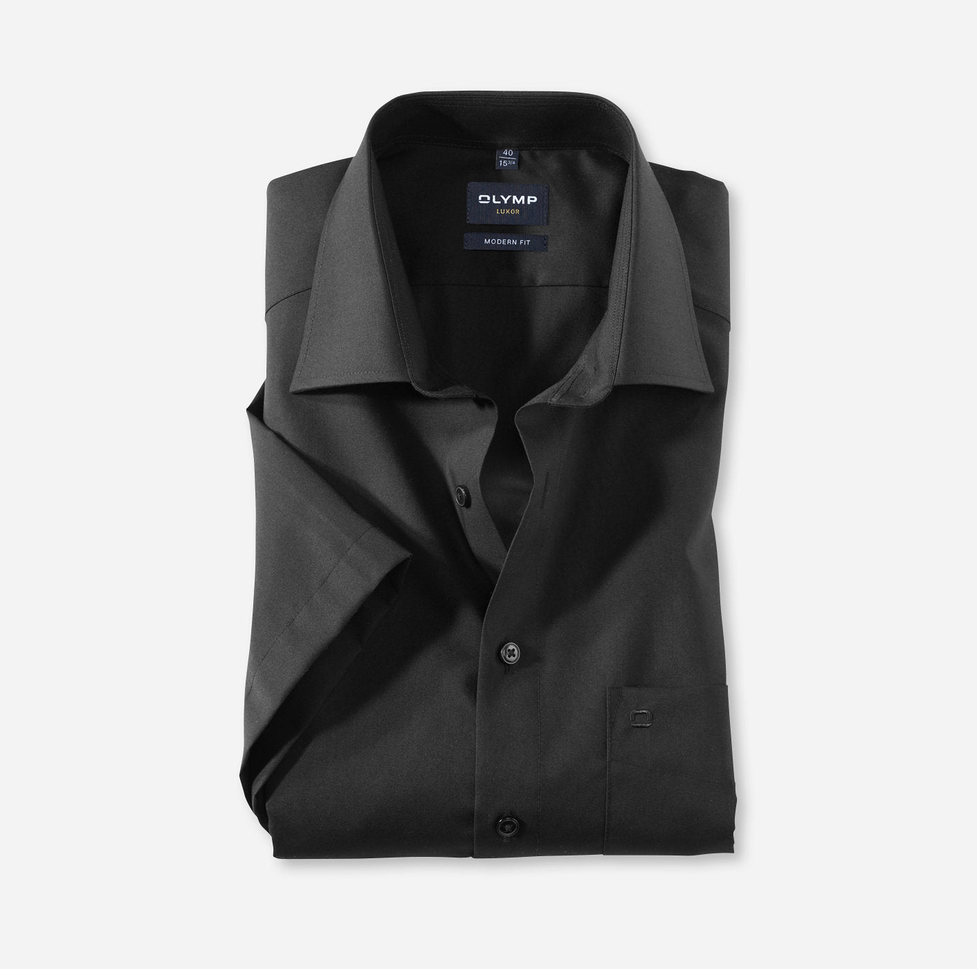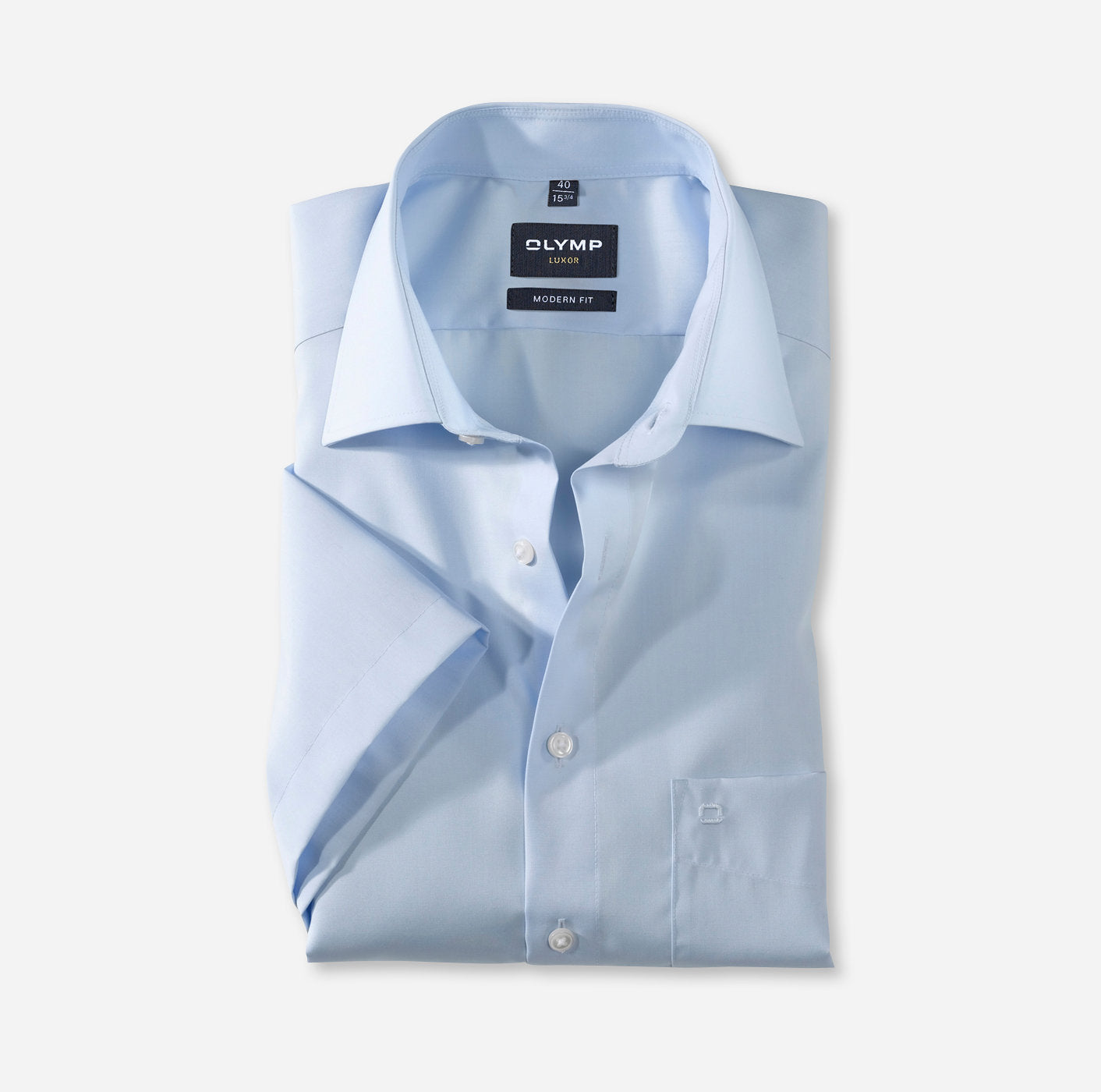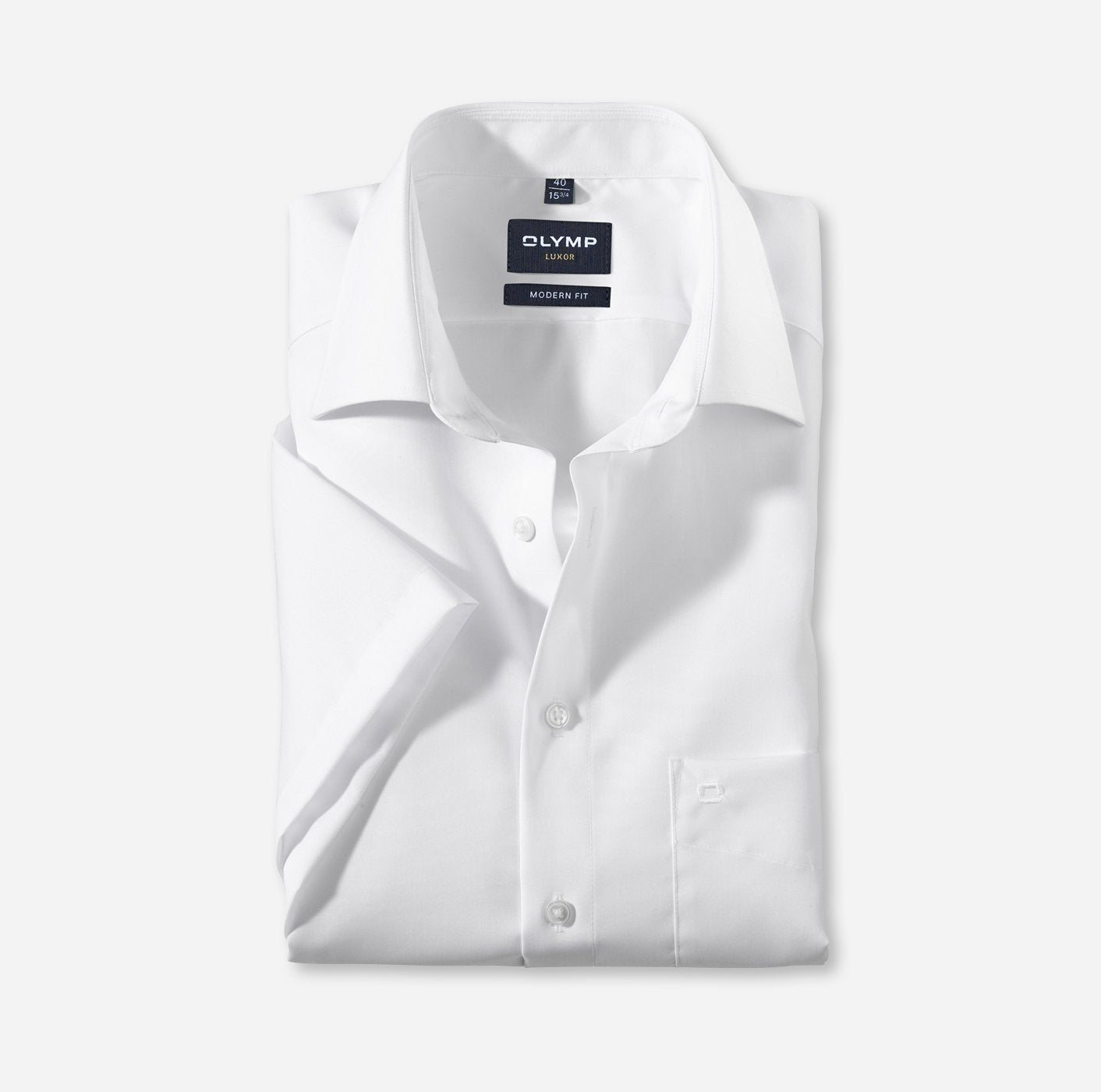 Waschen, trocknen, anziehen – Das Kurzarmhemd der Linie OLYMP Luxor modern fit bleibt auch ohne bügeln den ganzen Tag glatt dank seiner knitterfreien Eigenschaften. Der klassisch Weiße Oberstoff harmoniert mit dem eleganten New-Kent-Kragen und der italienischen Knopfleiste in perfekter Art und Weise.