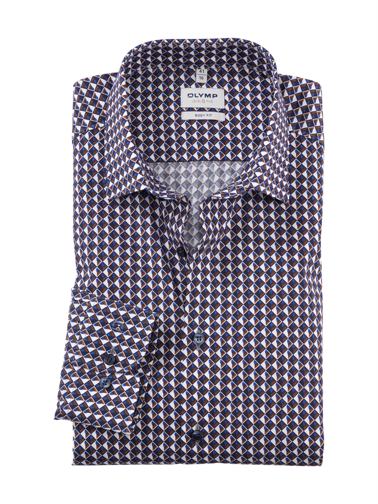 Pixelscharfes Grafik-Dessin in Rotbraun auf hautsympathischem Comfort-Stretch-Gewebe – ein perfekter Business-Allrounder. Das körperbetont geschnittene OLYMP Level Five in bewährter Textur aus feinen Baumwollgarnen sorgt für die standesgemäße Performance. Hautsympathischer Tragekomfort, Pflege- und Bügelleichtigkeit zeichnen das Hemd aus. Der jugendliche New York Kent harmoniert ideal zum schlanken Schnitt.