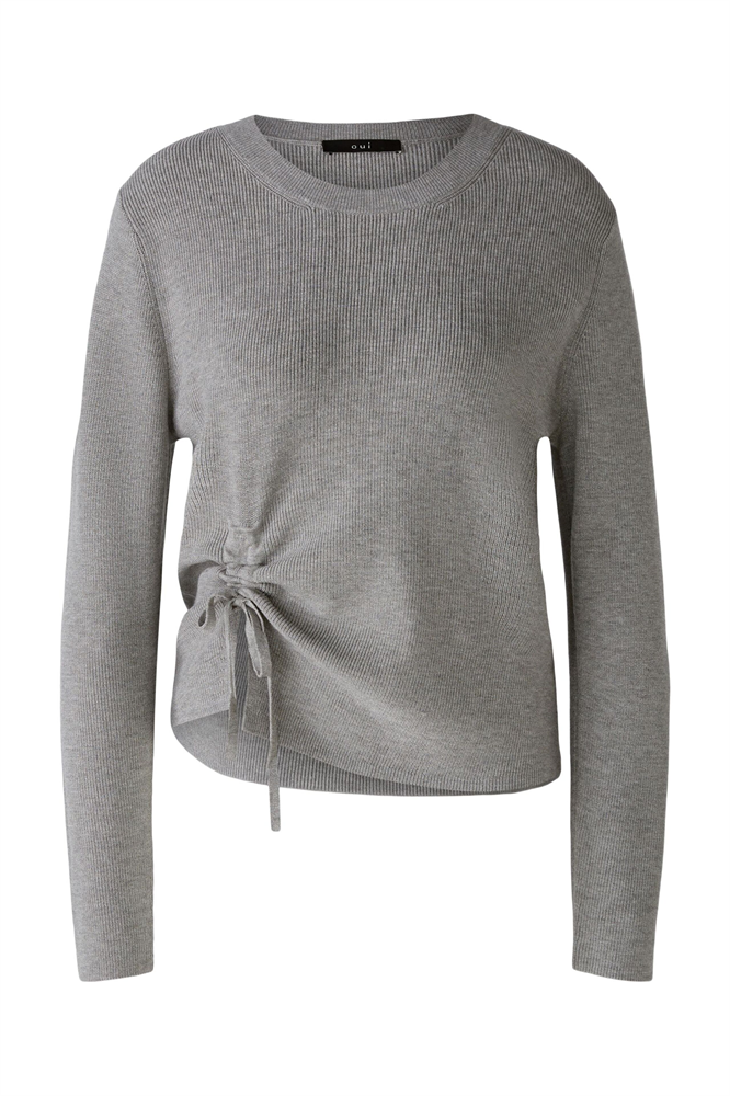Aufwendig gearbeiteter Pullover in Feinstrick - eingestrickter Tubular mit integrierter Strickkordel zum individuellen Anpassen der Raffung und somit der Länge