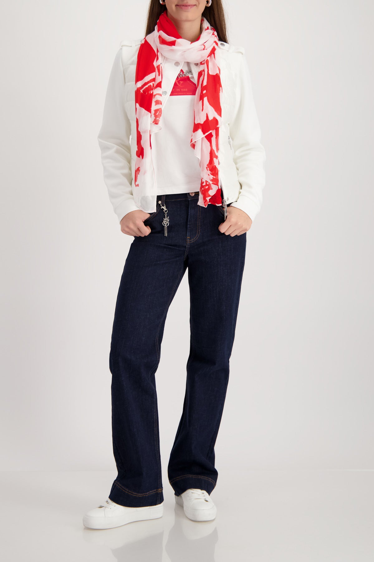 Dieses modische Tuch aus fließender Viskose überzeugt mit einem ausdrucksstarken Mustermix. Die rechteckige Form ermöglicht vielseitige Styling-Varianten – ob lässig um den Hals, als Haarband oder dekoratives Accessoire. Der weiche Stoff trägt sich angenehm leicht und verleiht jedem Outfit das gewisse Etwas.