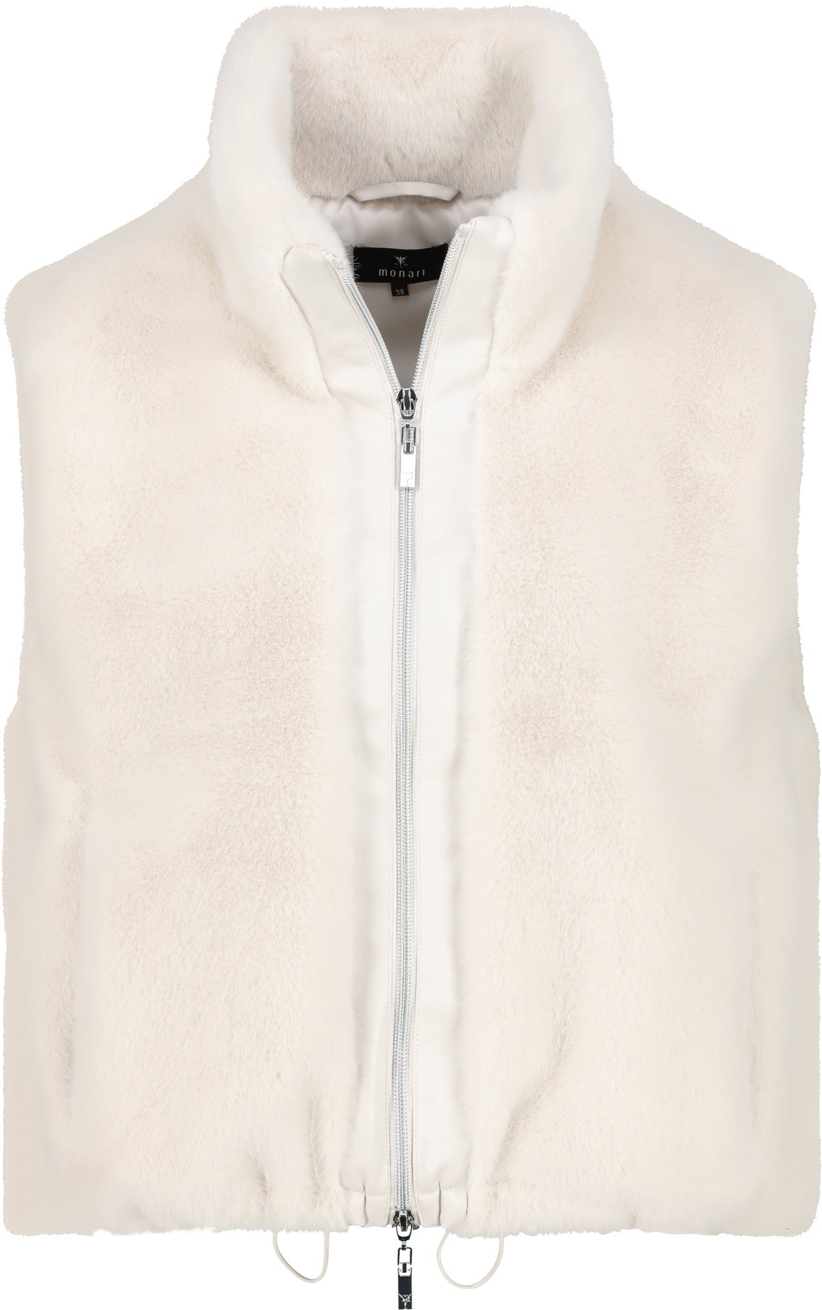 Diese elegante Fellweste besticht durch ihre besonders weiche Haptik und eine stilvolle Lederoptik am Reißverschluss. Der hohe Stehkragen und der 2-Wege-Reißverschluss sorgen für Komfort und Flexibilität, während der Gummizug am Saum die Passform optimiert.