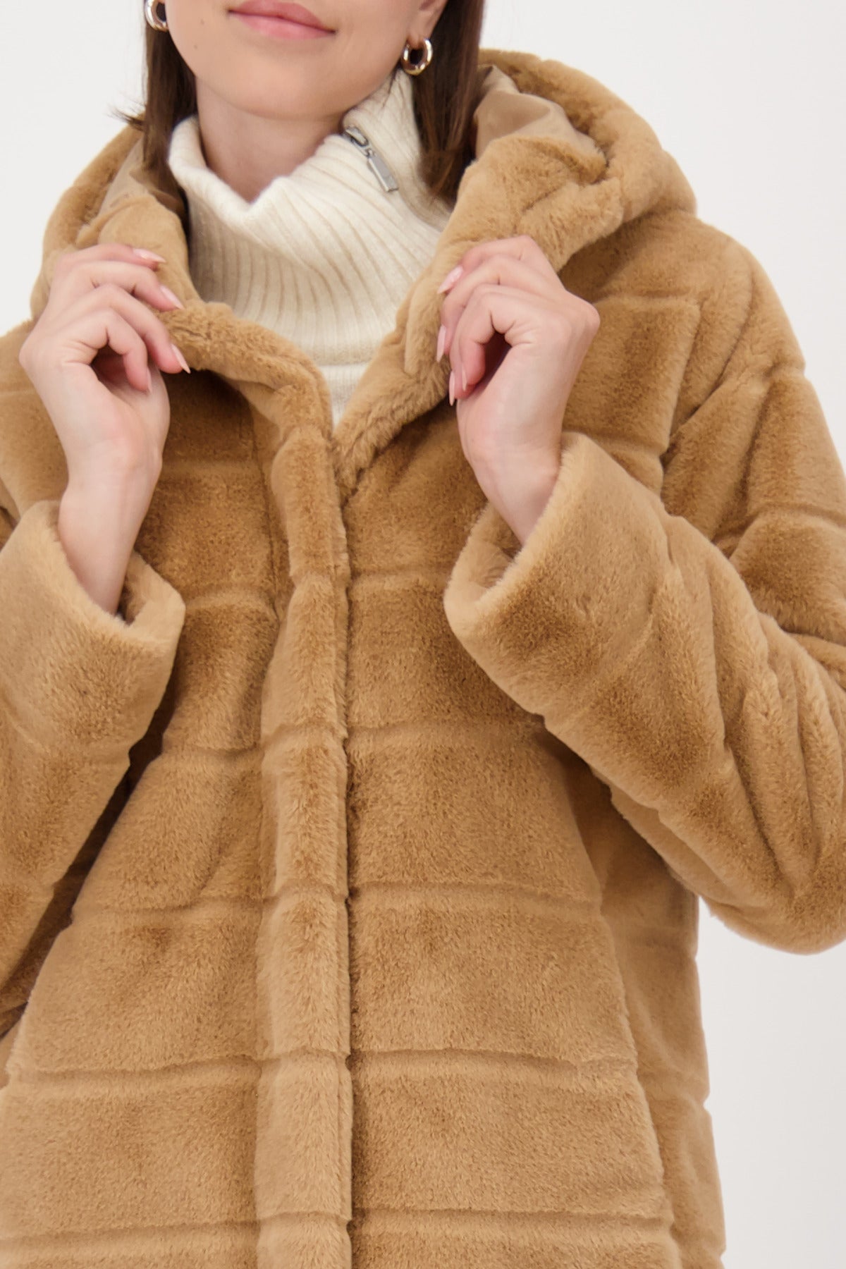 Stylischer Kunstfell-Mantel mit einer flauschigen Haptik und praktischen Eingrifftaschen. Ein modisches Statement für jeden Anlass.
