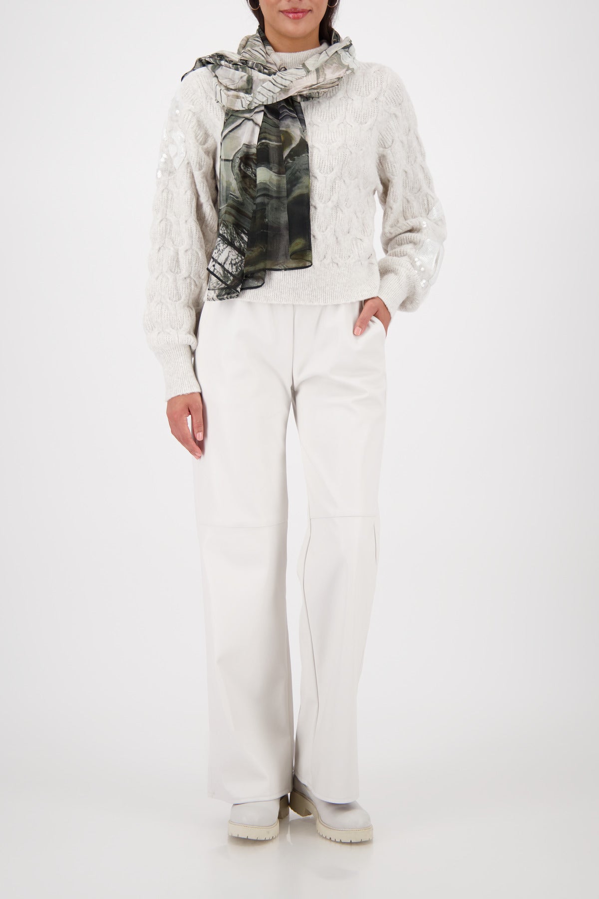 Dieses modische Tuch aus fließender Viskose überzeugt mit einem ausdrucksstarken Allover-Gallery-Muster. Die rechteckige Form ermöglicht vielseitige Styling-Varianten – ob lässig um den Hals, als Haarband oder dekoratives Accessoire. Der weiche Stoff trägt sich angenehm leicht und verleiht jedem Outfit das gewisse Etwas.