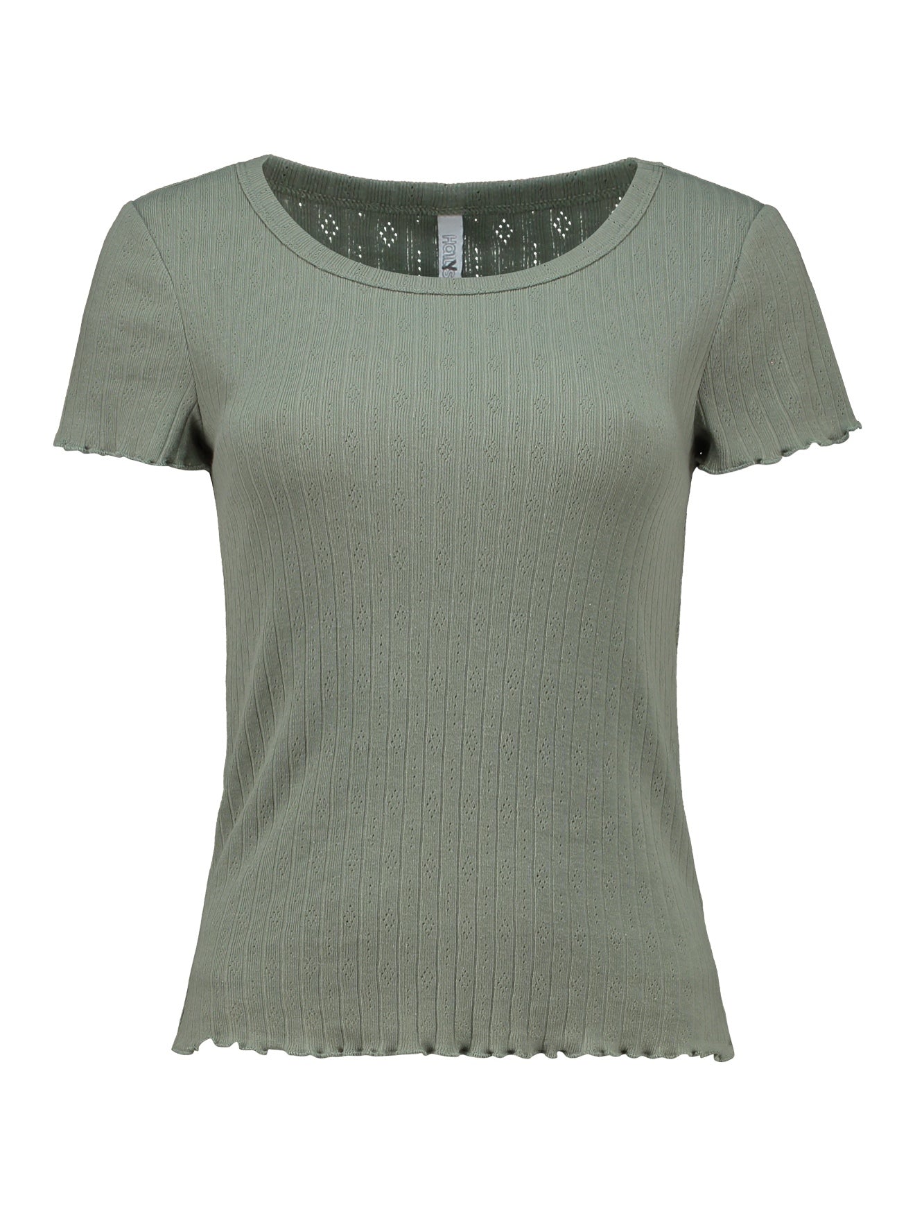 Geripptes Kurzarmshirt mit Rundhalsausschnitt.