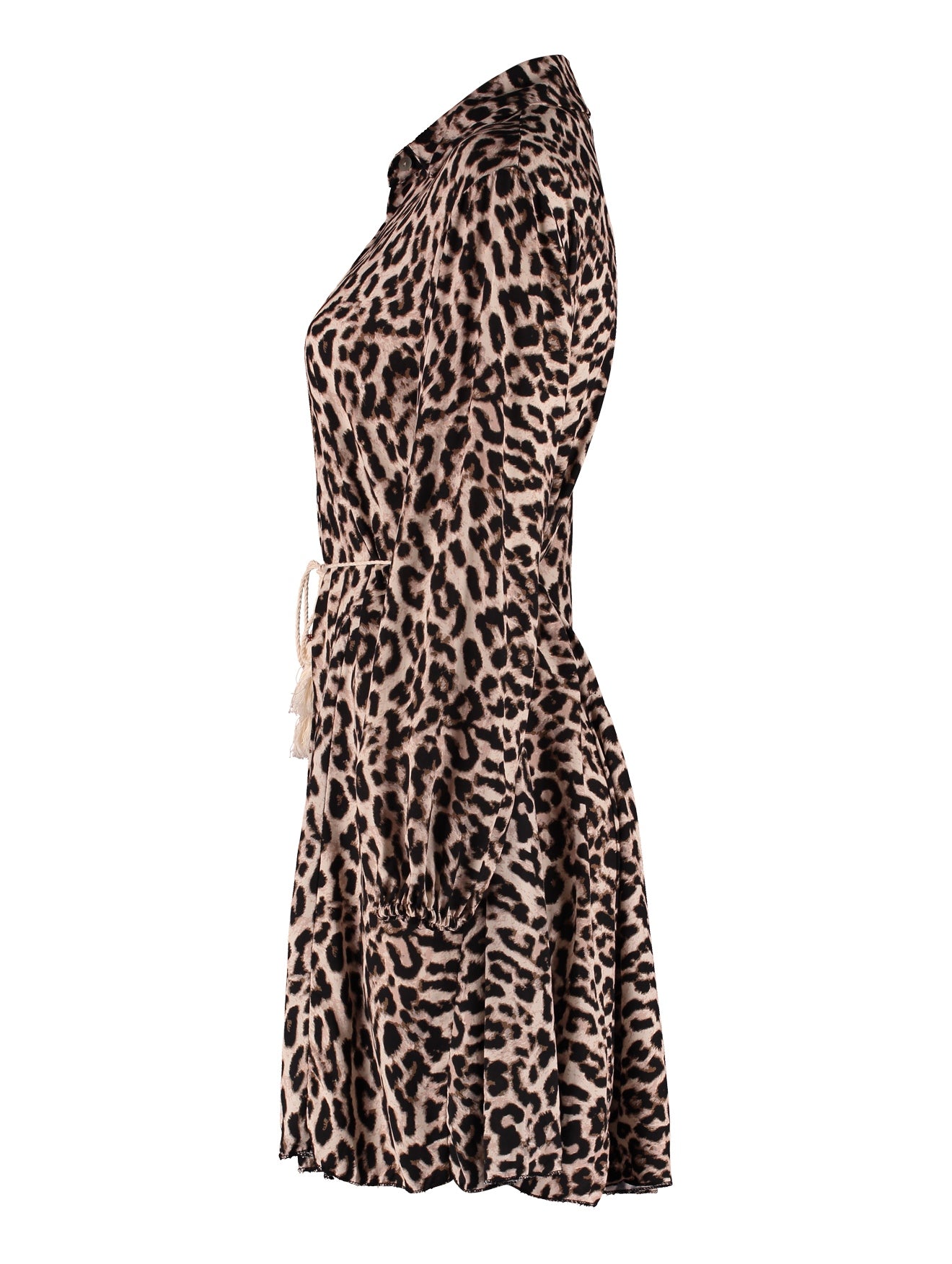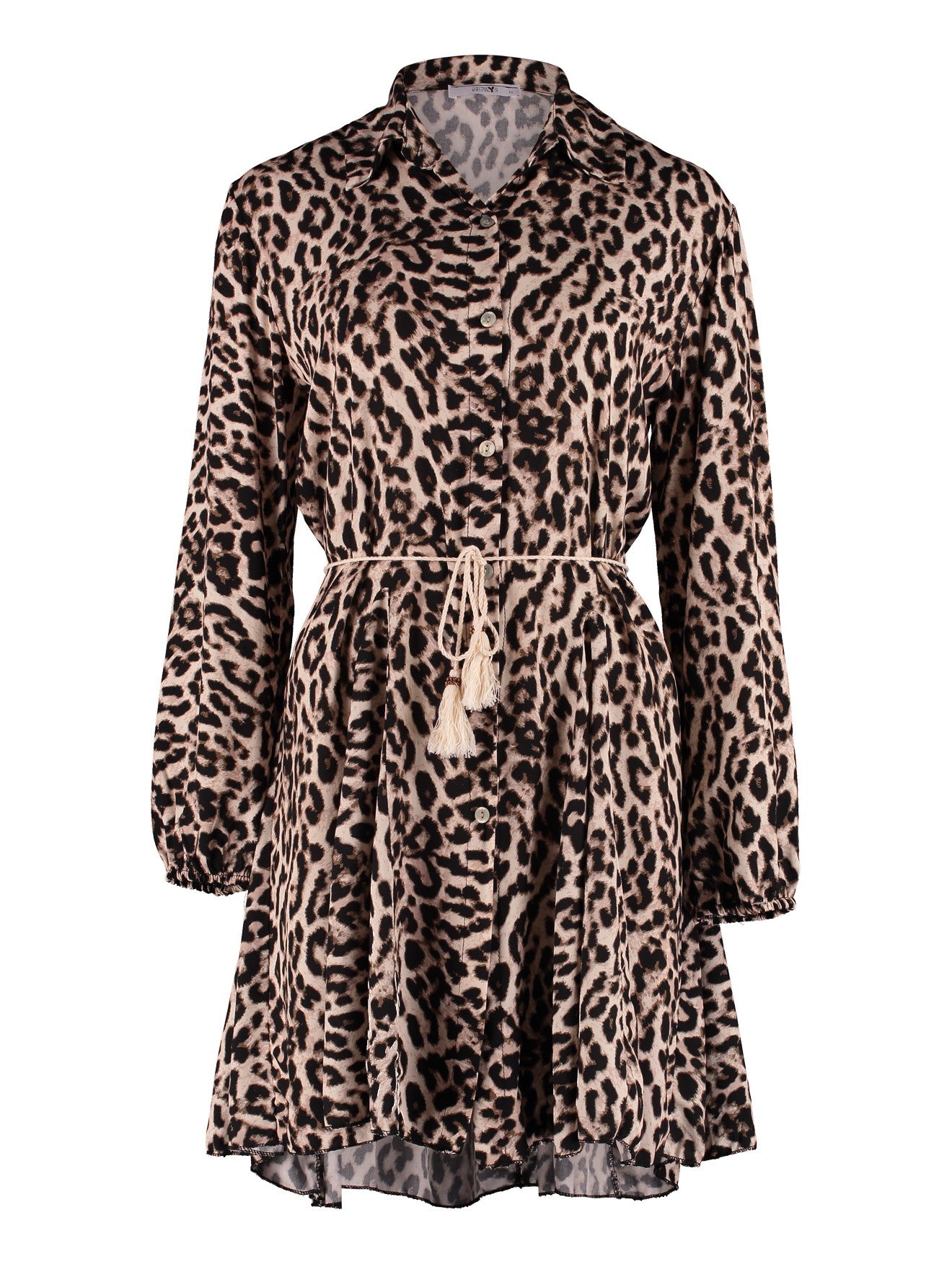 Kurzes Blusenkleid aus leichter Viskose. Mit Kragen, Knopfleiste und einem schmalen abnehmbaren Bindegürtel.