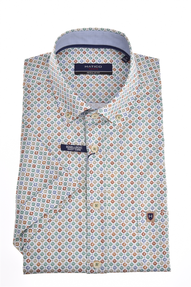 Herrenhemd bedruckt,Easy care,Button Down Kragen,Halbarm,Regular Fit - Kurzform,100% Baumwolle