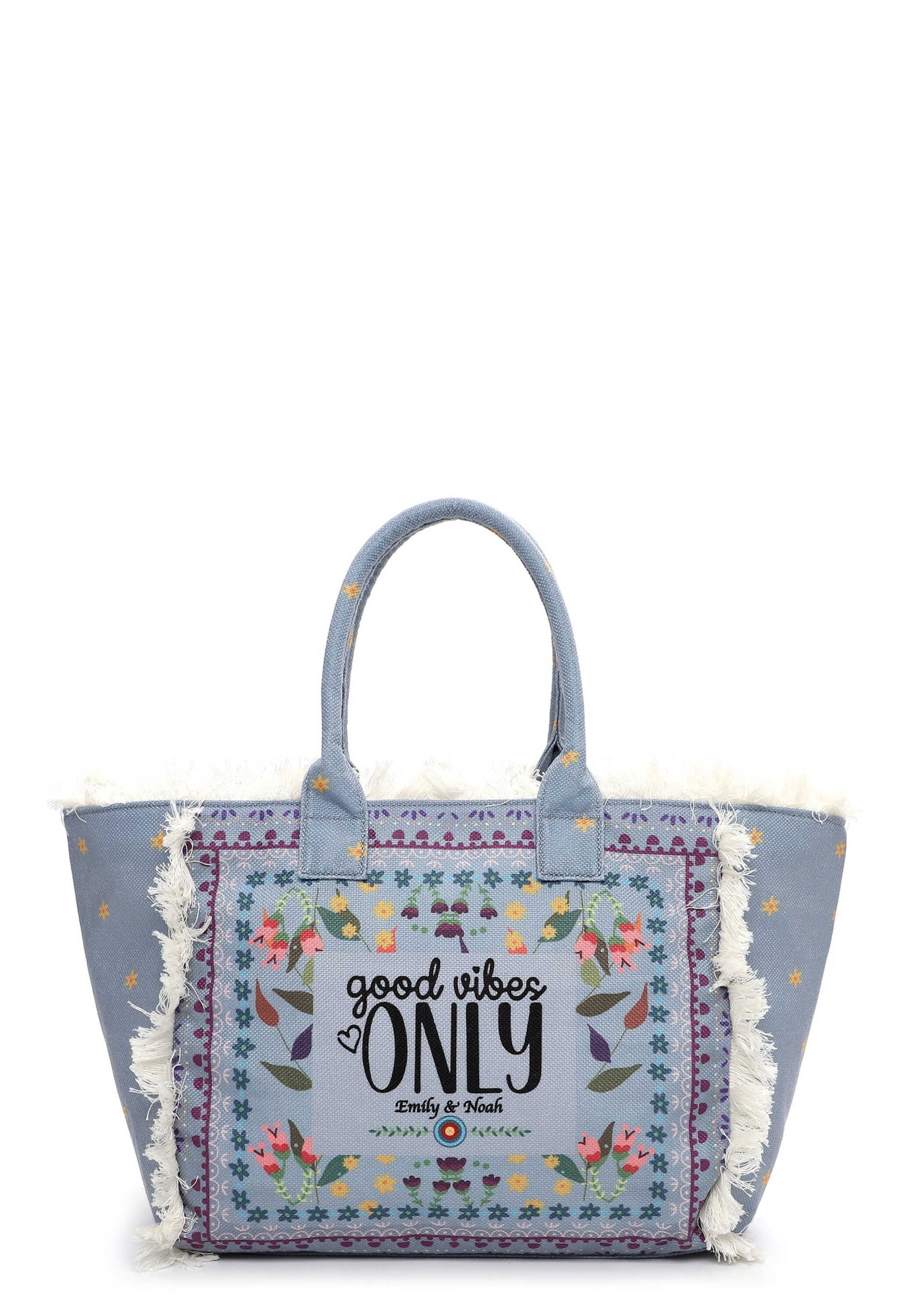 EMILY & NOAH - für selbstbewusste Frauen, die wissen, wer sie sind Eine Handtasche zeigt die Persönlichkeit einer Frau. Ob hundertpro geordnet oder etwas chaotisch - sie wird einfach heißgeliebt! Der Shopper E&N Elea kommt aus Feinsynthetik mit Reißverschluss und sieht einfach toll aus. Er ist ein lässiges Statement für den Alltag. Ein Shopper auf den immer Verlass ist. Das Modell besteht aus Feinsynthetik und lässt sich mit einem Reißverschluss verschließen. Mit seinem Stoff und dem floralen Design ist der hochwertige Shopper ein echter Hingucker. Mit jedem Accessoire von EMILY & NOAH wird ein ganz und gar individueller Stil kreiert. Kombiniert mit einer schicken Hose, einem Kleid oder einer angesagten Bluse zeigen die Produkte des Labels echte Persönlichkeit. Ordnung ist das halbe Leben. Ein übersichtliches Hauptfach sind in der Tasche integriert. Für alle, die eine weiche Haptik lieben - E&N Elea ist angenehm anschmiegsam. Fransen schmücken optisch und heben das ausgefallene Design
