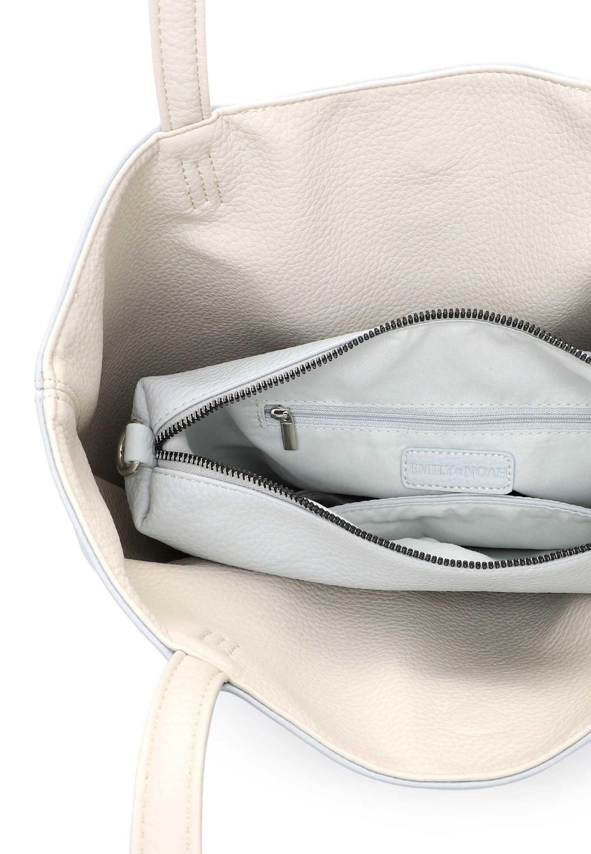 EMILY & NOAH - für stilsichere Frauen, die wissen, wer sie sind Authentisch, selbstbewusst und brillant - so zeigen sich Frauen im Alltag. Selbstredend am liebsten mit ihrer Lieblingstasche. Der Shopper E&N Eva kommt in zweifarbigem Design mit Magnetdruckknopf und sieht einfach toll aus. Er ist ein lässiges Statement für den Alltag. Ein Shopper auf den man zählen kann. Dieser exklusive Shopper ist ausgesprochen leicht formwandelbar - das macht ihn zu einem unvergleichlichen Begleiter! Das Modell besteht aus Feinsynthetik und lässt sich mit einem Magnetdruckknopf verschließen. Ein optisches Highlight ist der Shopper mit Echtleder-Optik und dem zweifarbigen Design. Mit dem Accessoire von EMILY & NOAH wird ein durch und durch individueller Stil geschaffen. Kombiniert mit einer schicken Hose, einem Kleid oder einer angesagten Bluse zeigen die Produkte des Labels echte Persönlichkeit. Der Shopper hat ein übersichtliches Hauptfach. Das Modell E&N Eva ist von der Haptik eher weich und daher w