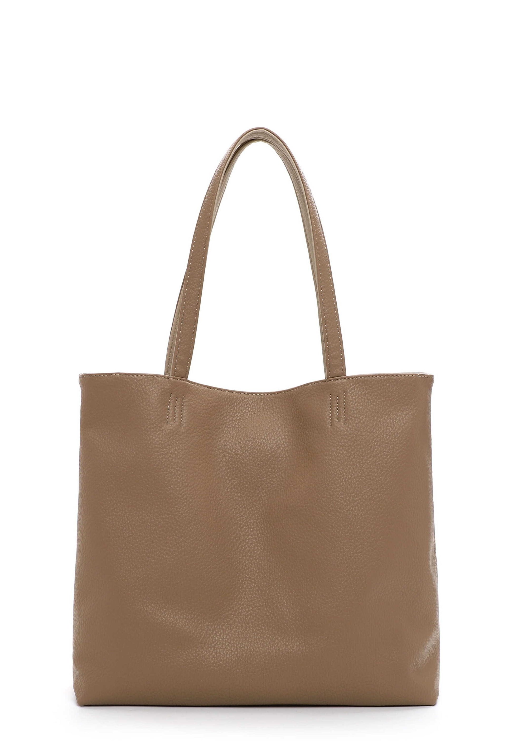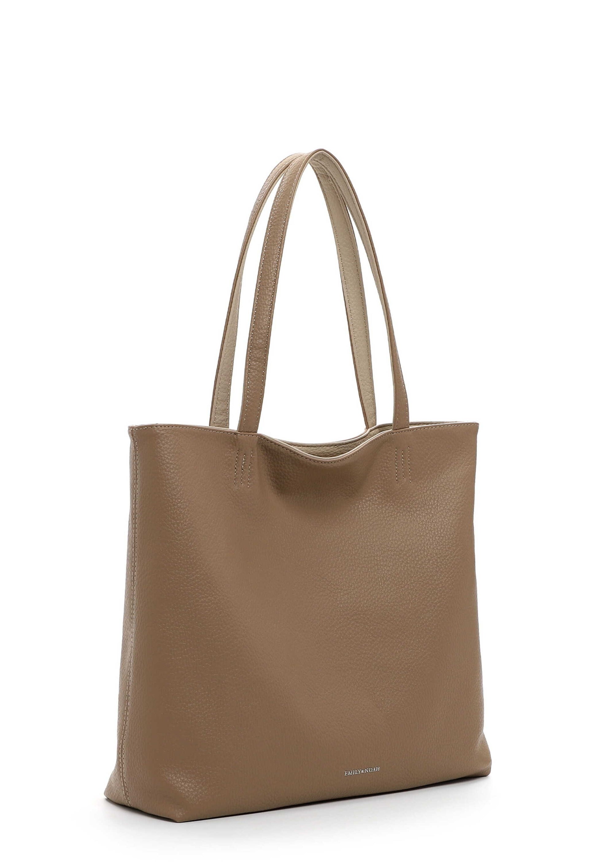 EMILY & NOAH - für stilsichere Frauen, die wissen, wer sie sind Authentisch, selbstbewusst und brillant - so zeigen sich Frauen im Alltag. Selbstredend am liebsten mit ihrer Lieblingstasche. Der Shopper E&N Eva kommt in zweifarbigem Design mit Magnetdruckknopf und sieht einfach toll aus. Er ist ein lässiges Statement für den Alltag. Ein Shopper auf den man zählen kann. Dieser exklusive Shopper ist ausgesprochen leicht formwandelbar - das macht ihn zu einem unvergleichlichen Begleiter! Das Modell besteht aus Feinsynthetik und lässt sich mit einem Magnetdruckknopf verschließen. Ein optisches Highlight ist der Shopper mit Echtleder-Optik und dem zweifarbigen Design. Mit dem Accessoire von EMILY & NOAH wird ein durch und durch individueller Stil geschaffen. Kombiniert mit einer schicken Hose, einem Kleid oder einer angesagten Bluse zeigen die Produkte des Labels echte Persönlichkeit. Der Shopper hat ein übersichtliches Hauptfach. Das Modell E&N Eva ist von der Haptik eher weich und daher w