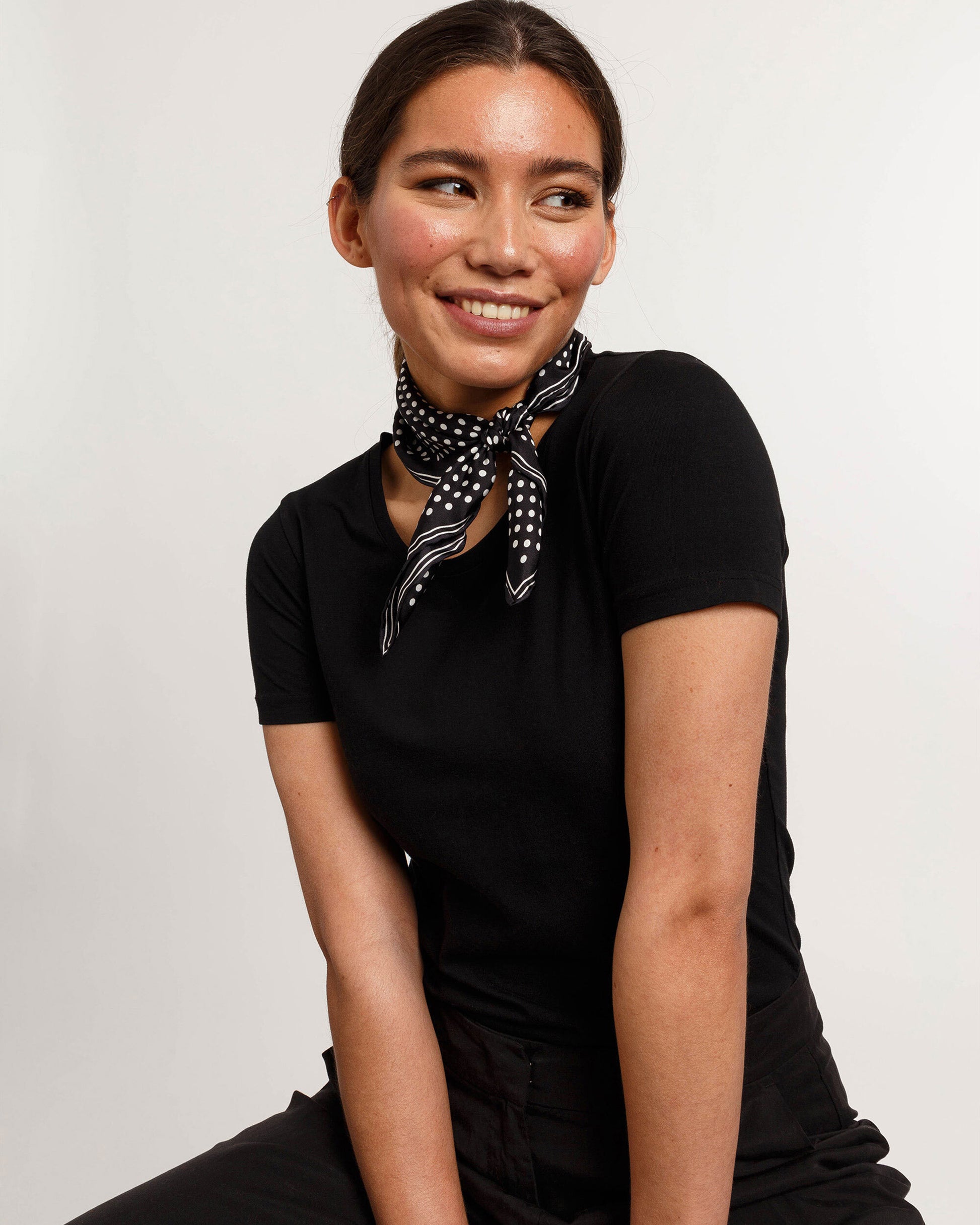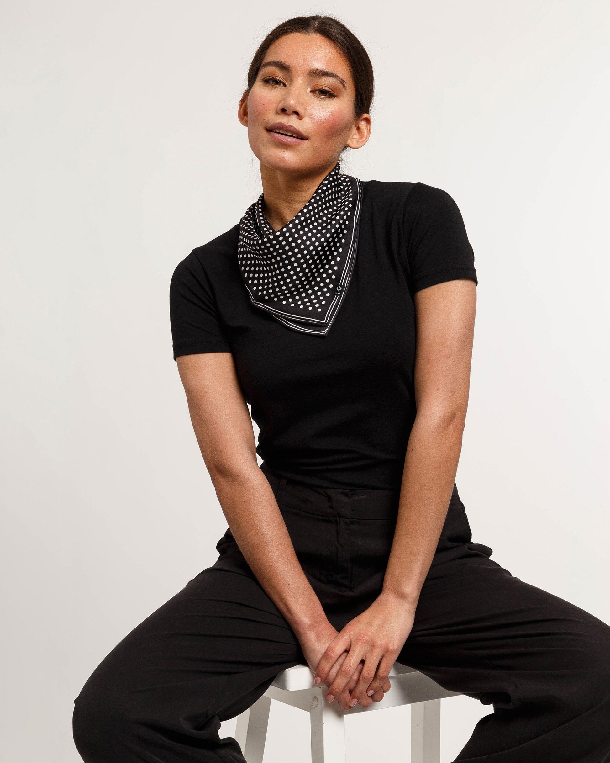 Auf den Punkt gebracht: Das einzigartige Nickituch im Punktestyle ist ein echtes Highlight. Mit einer Größe von 51 x 51 cm lässt sich das Seidentuch angenehm um den Hals, am Handgelenk oder im Haar tragen. Der handrollierte Saum ist eines der Qualitätsmerkmale für Seidentücher. Getragen in Kombination mit dem Rockabilly Style rundet das Tuch ihr Outfit perfekt ab.