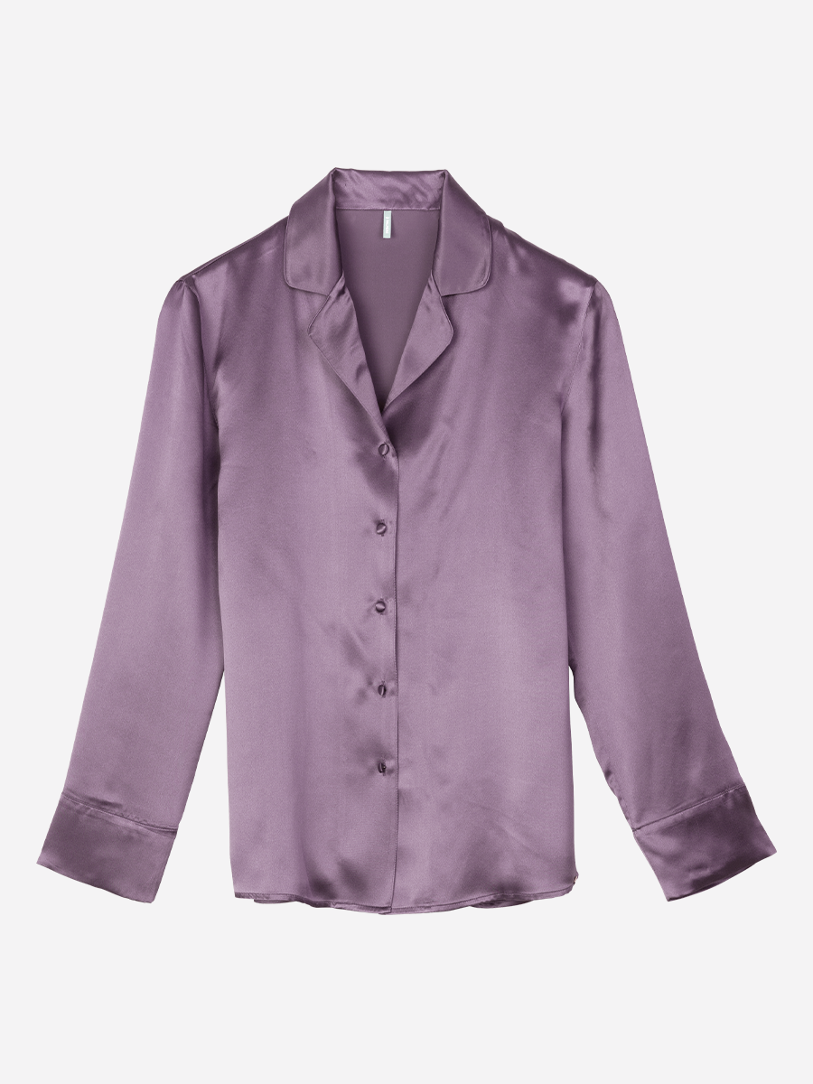 Pure Eleganz in der Palmers Farbe der Saison: Vintage Lavender! Der Pyjama aus reinem, hochwertigen gewebten Seidensatin versprüht Luxuriösität, Eleganz und Geschmeidigkeit! Der Kragen und die Knopfleiste sind modische und praktische Details zugleich.