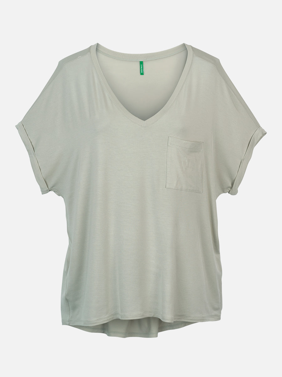 Das Basic-Shirt mit V-Ausschnitt und Brusttasche im Oversize Look ist aus einer hochwertigen Viskose Mischung gefertigt. Das verlängerte Rückenteil und die vorverlegte Schulternaht sind besonders modische Details. Perfekt kombinierbar zu vielen Nachtwäsche und Homewear Serien der Kollektion und auch als Oberbekleidung tragbar.