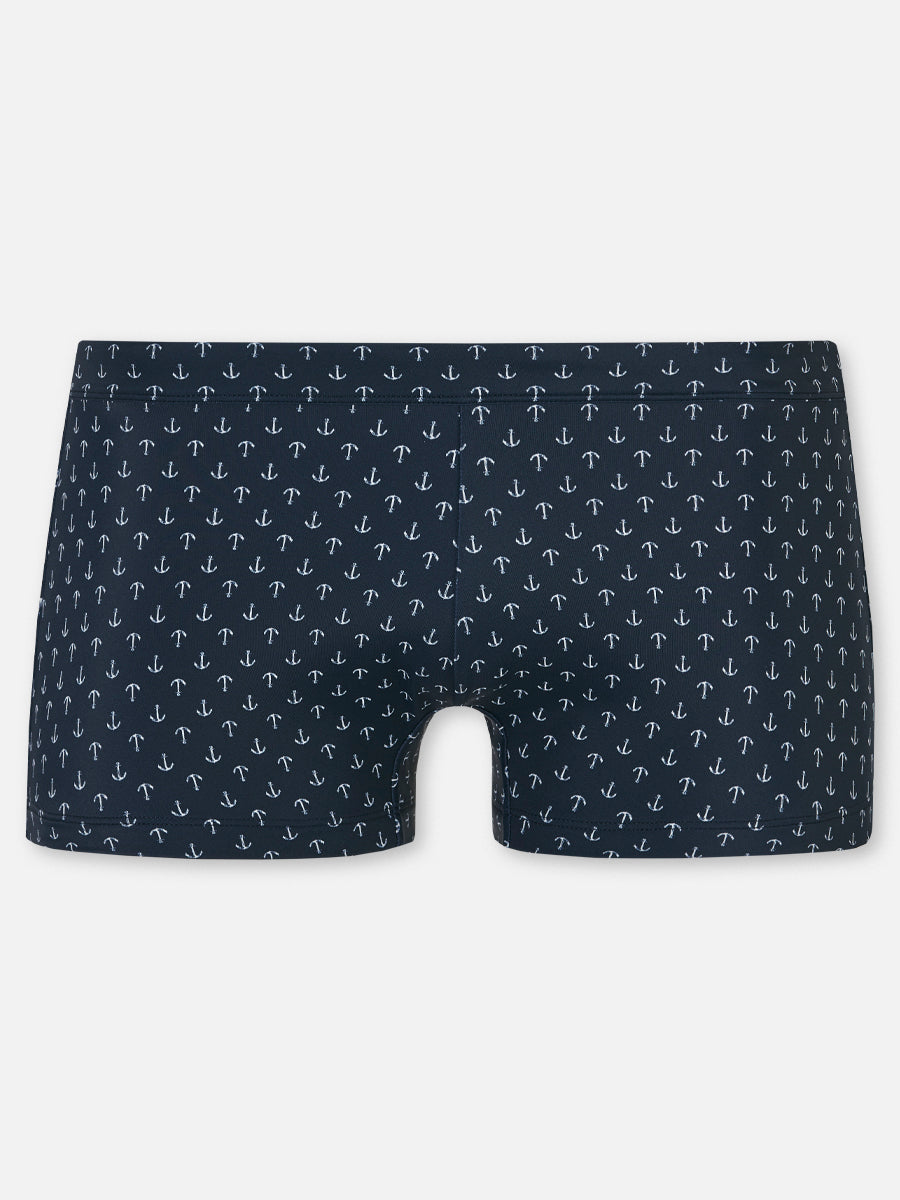 Besonders beliebt und vielseitig einsetzbar: Die klassische, enganliegende Schwimmhose aus recyceltem Nylon, sorgt mit ihrem elastischen Bund, sowie ihren innenliegenden Bindebändern für optimalen Halt und Komfort. Das Model misst 180 cm und trägt die Konfektionsgröße DE 48. Dekolleté: 97 cm, Taille: 75 cm, Hüfte: 96 cm
