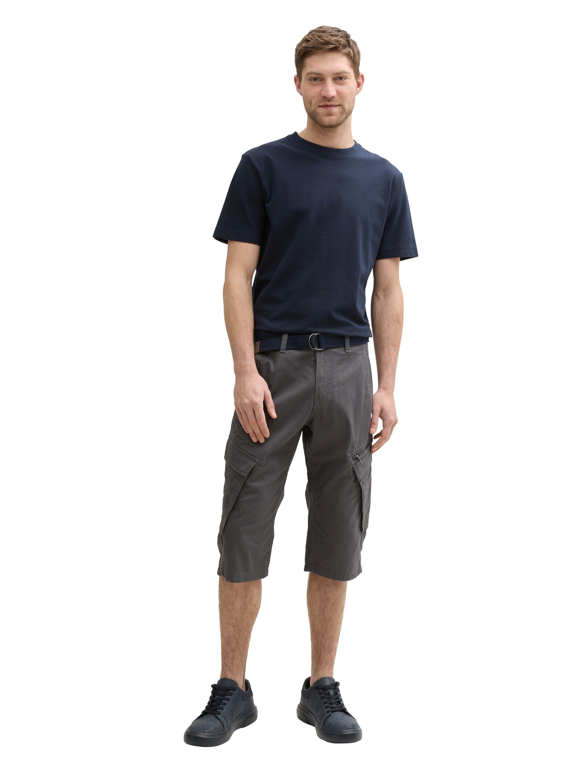 * Knielange Cargo-Hose mit zusätzlichem Stoffgürtel. Mit Reißverschluss-Taschen am Bein, seitlichen Eingriffstaschen und Pattentaschen hinten. Aus einem fein gemusterten Baumwollstoff.