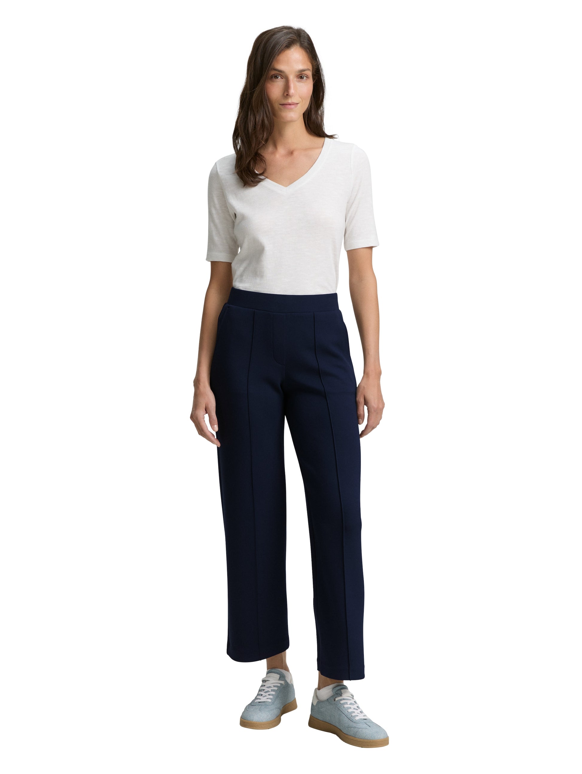 * Hose mit elastischem Bund und seitlichen Eingriffstaschen. Mit Ziernaht auf der Vorderseite und Fake-Taschen auf der Rückseite. Aus einem knitterarmen, elastischen und neoprenähnlichen Scuba-Stoff.