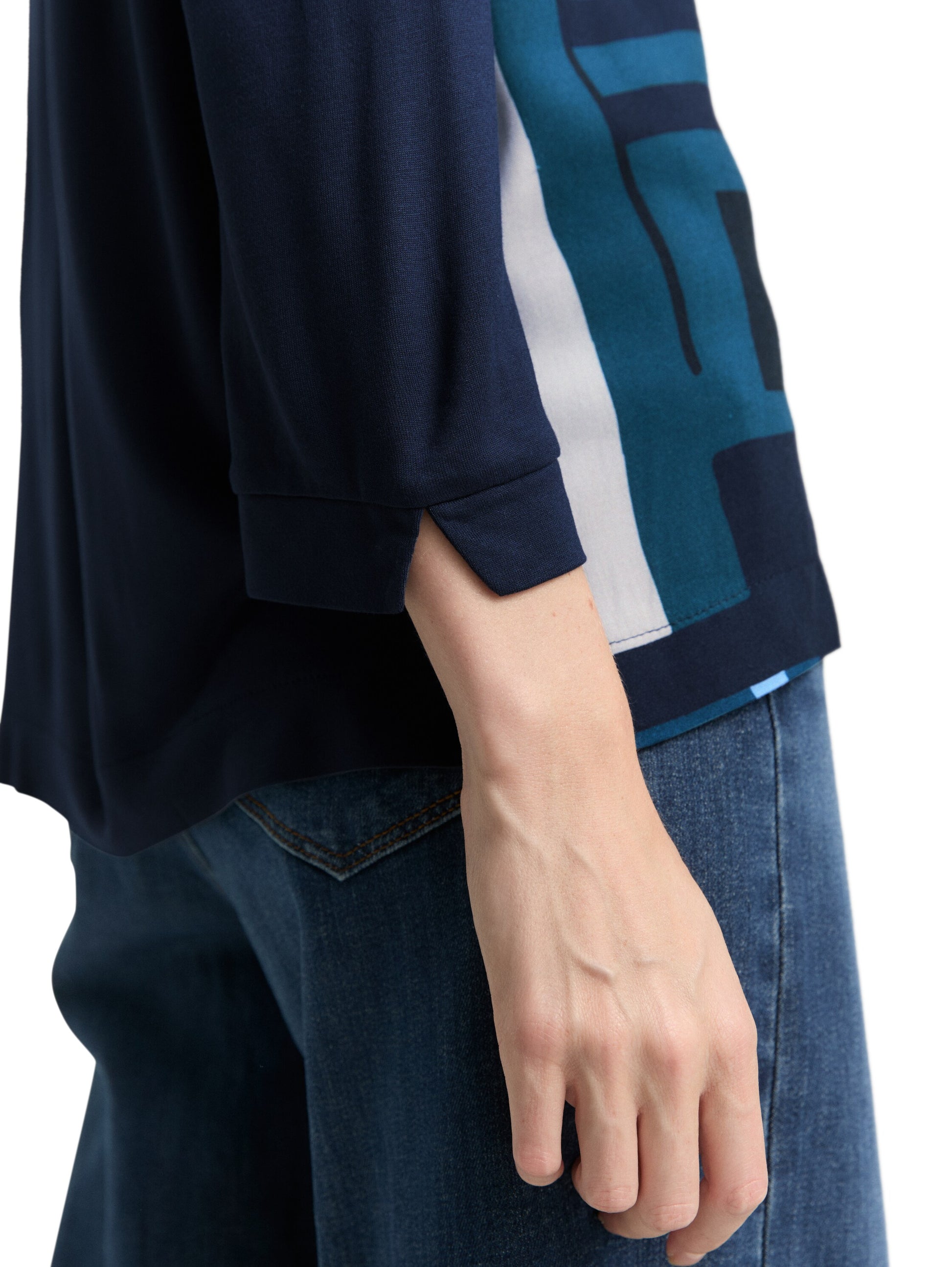 * 3/4-Arm-Shirt mit Muster auf der Vorderseite. Im Material-Mix mit gewebtem Stoff vorne und Jersey hinten und an den Ärmeln.