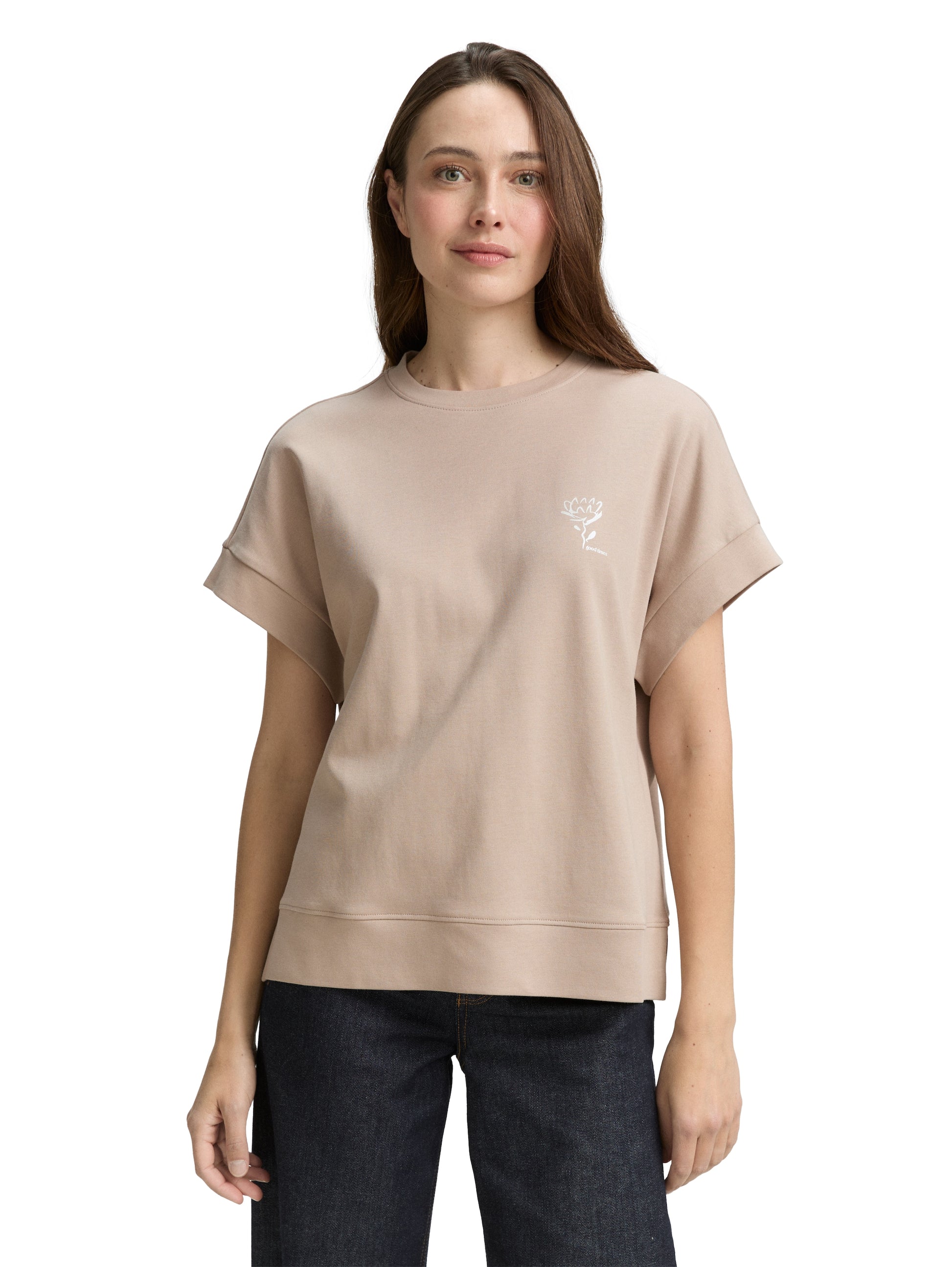 * Locker geschnittenes T-Shirt aus Baumwolle mit Blumen-Print auf der Brust und kurzen Seitenschlitzen