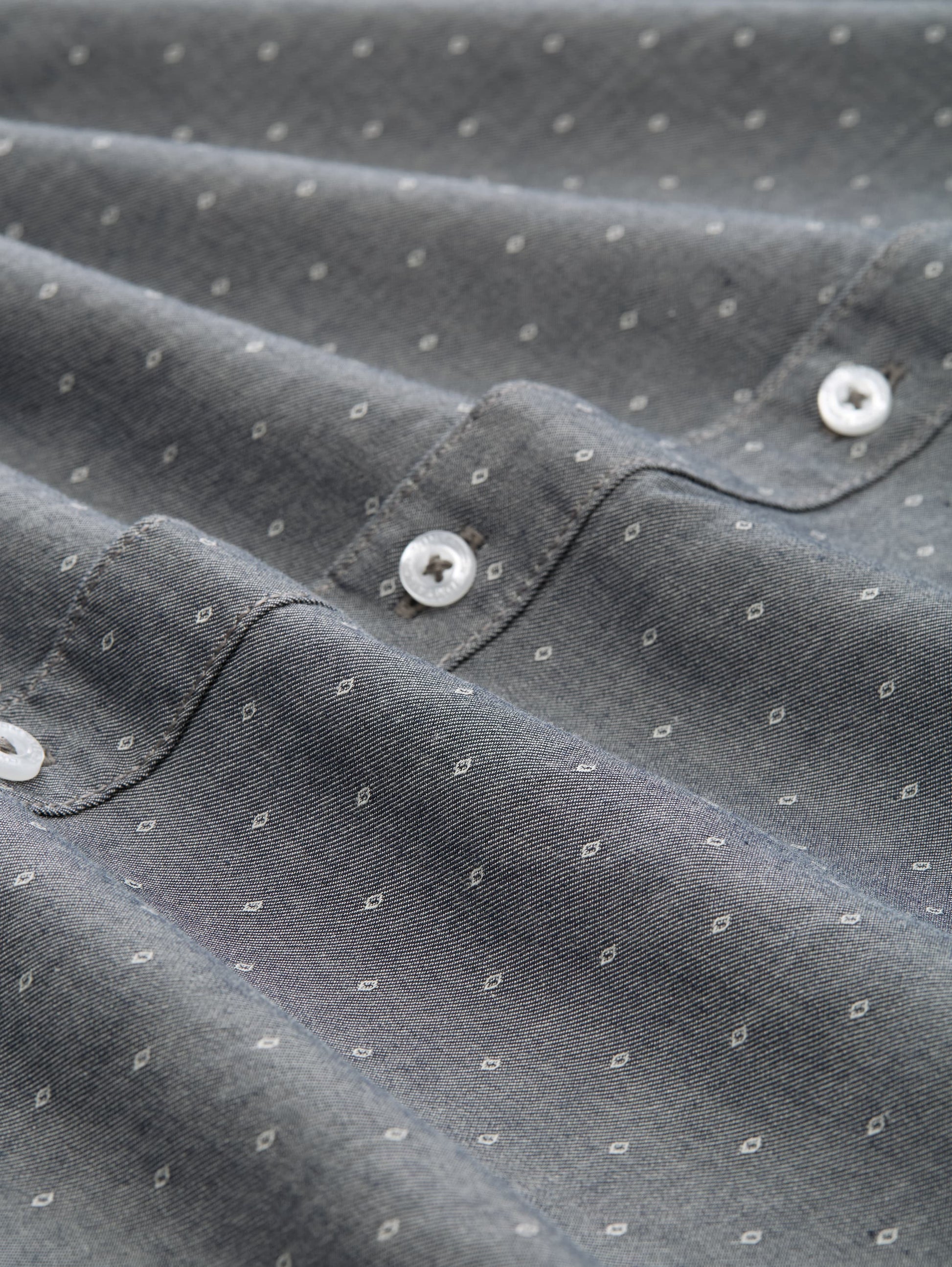 Klassisches Hemd mit Knopfleiste, Brusttasche und einem feinen geometrischen Muster.