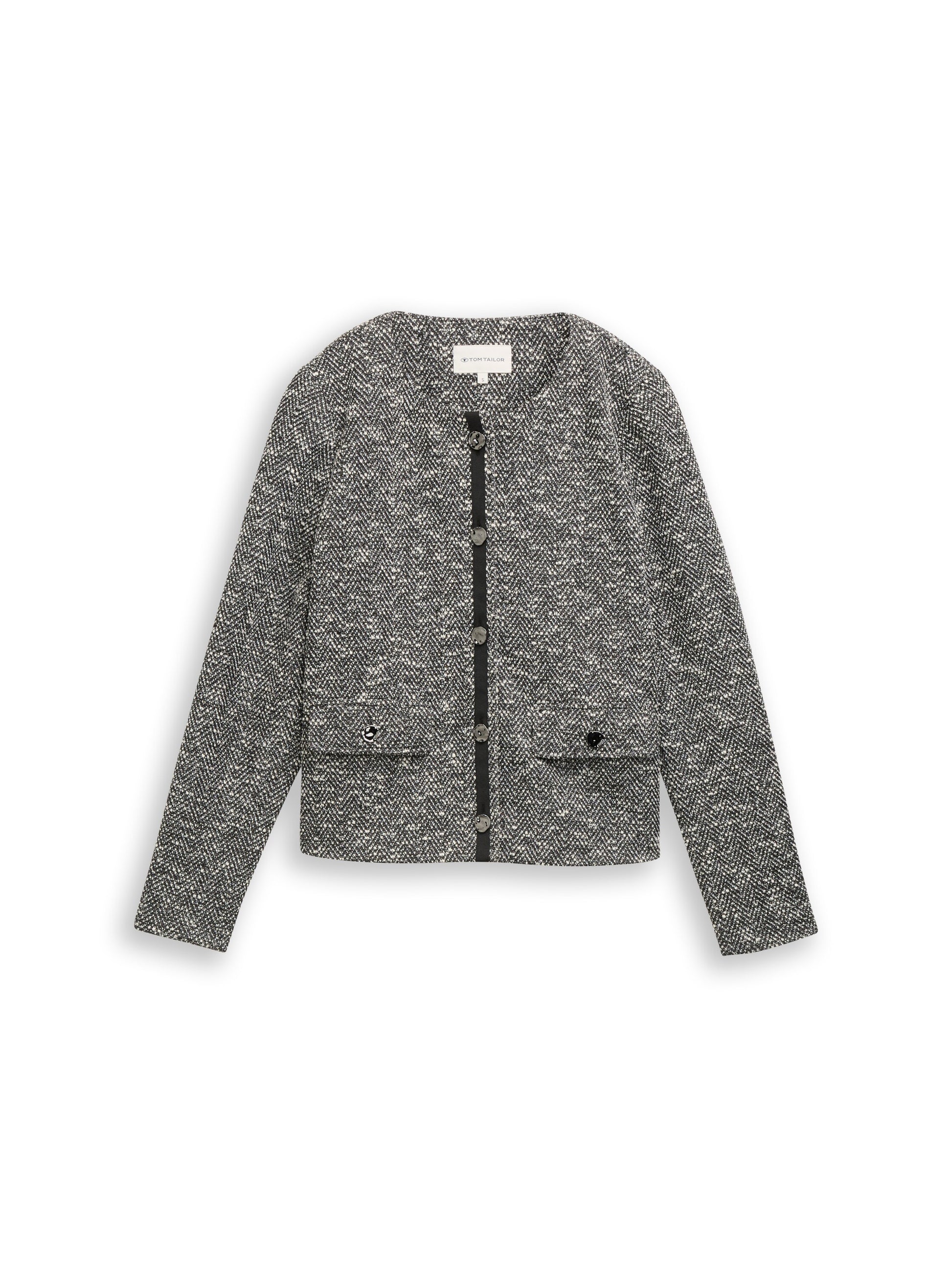Strukturierte Blazer Jacke aus Bouclé mit Knopfleiste und Pattentaschen auf der Vorderseite