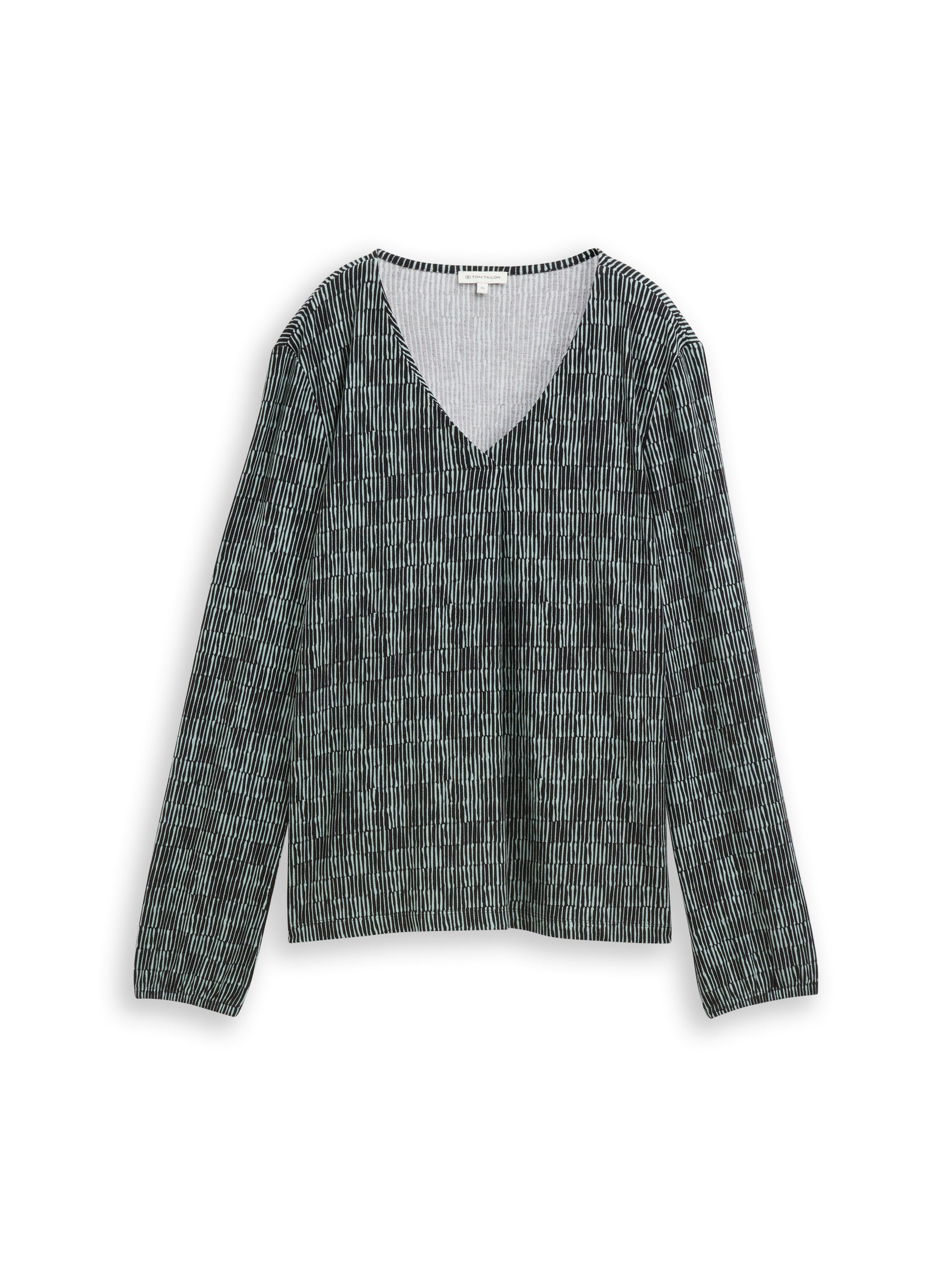 Gemustertes Longsleeve mit V-Ausschnitt und elastischem Gummibund am Saum & Ärmel. Aus einem strukturierten Krepp-Material.