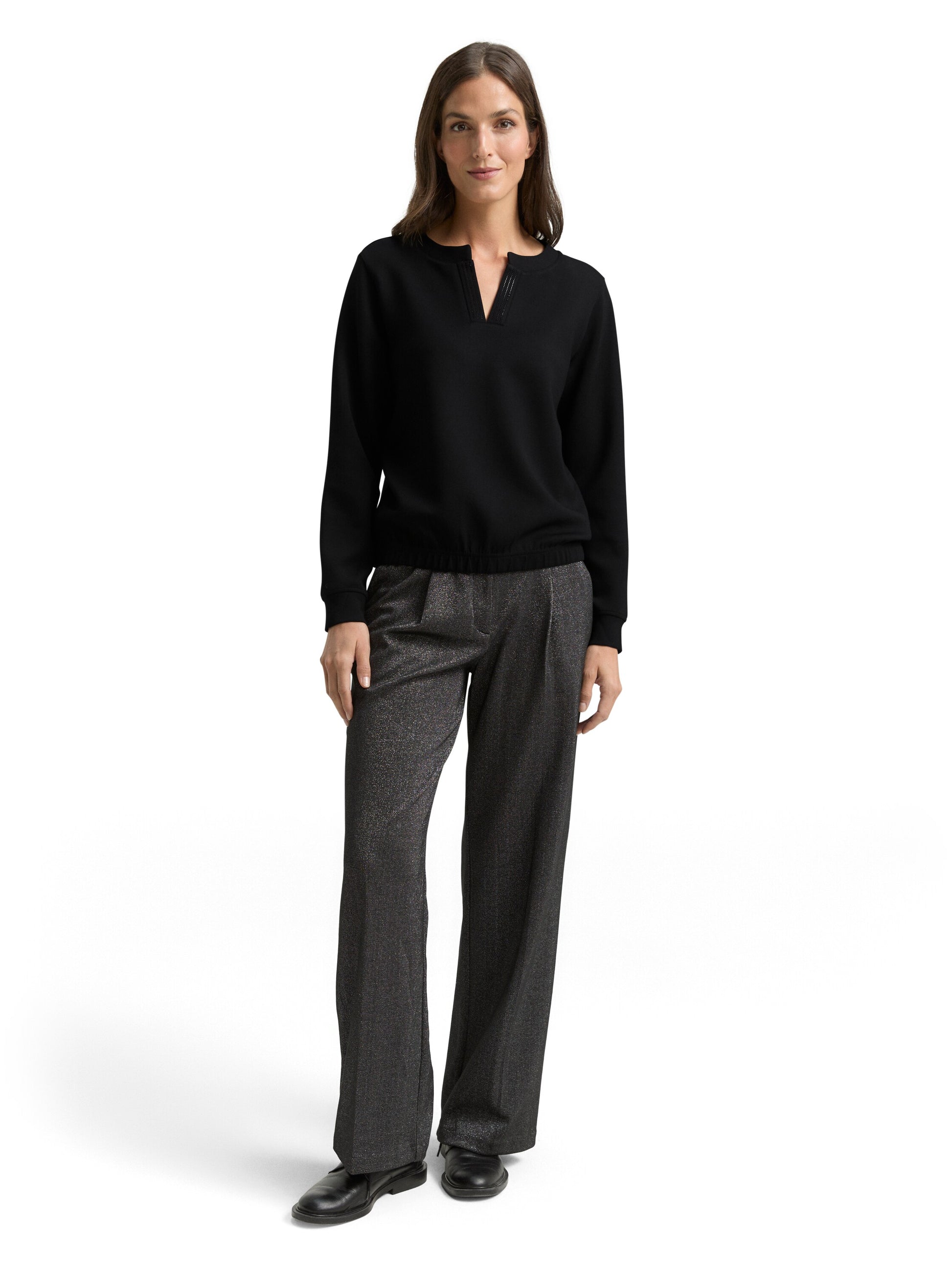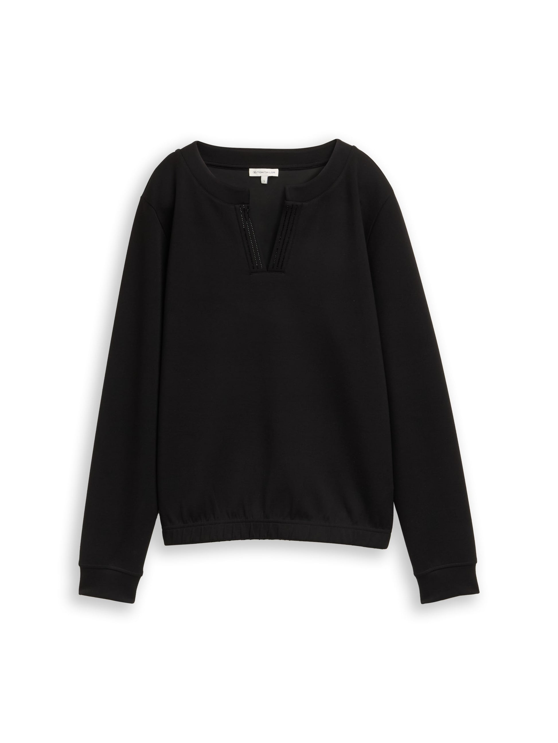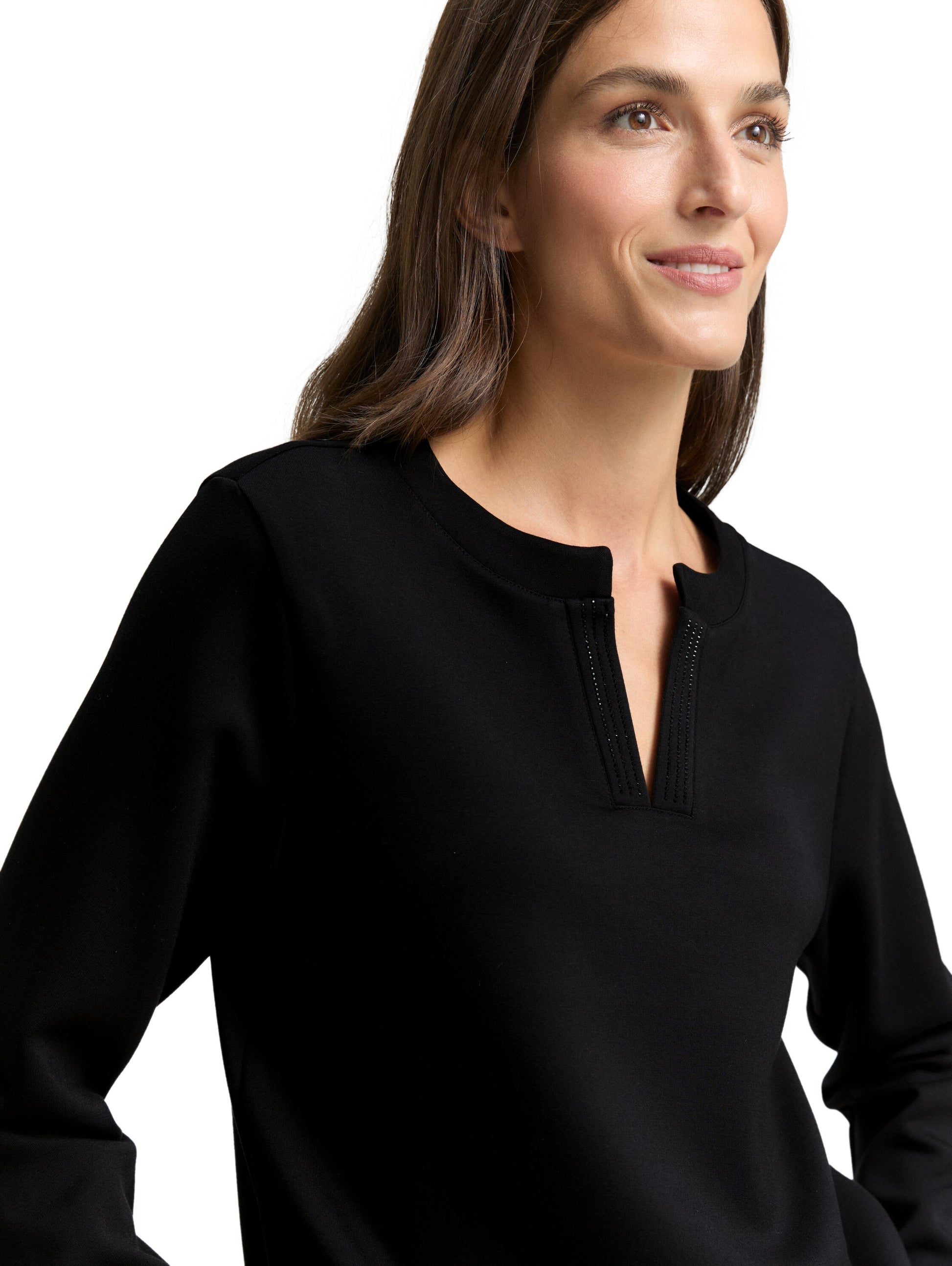 Sweatshirt mit Strasssteinen am Ausschnitt und elastischem Gummibund am Saum. Aus einem weichen, knitterarmen und elastischen Scuba-Stoff.