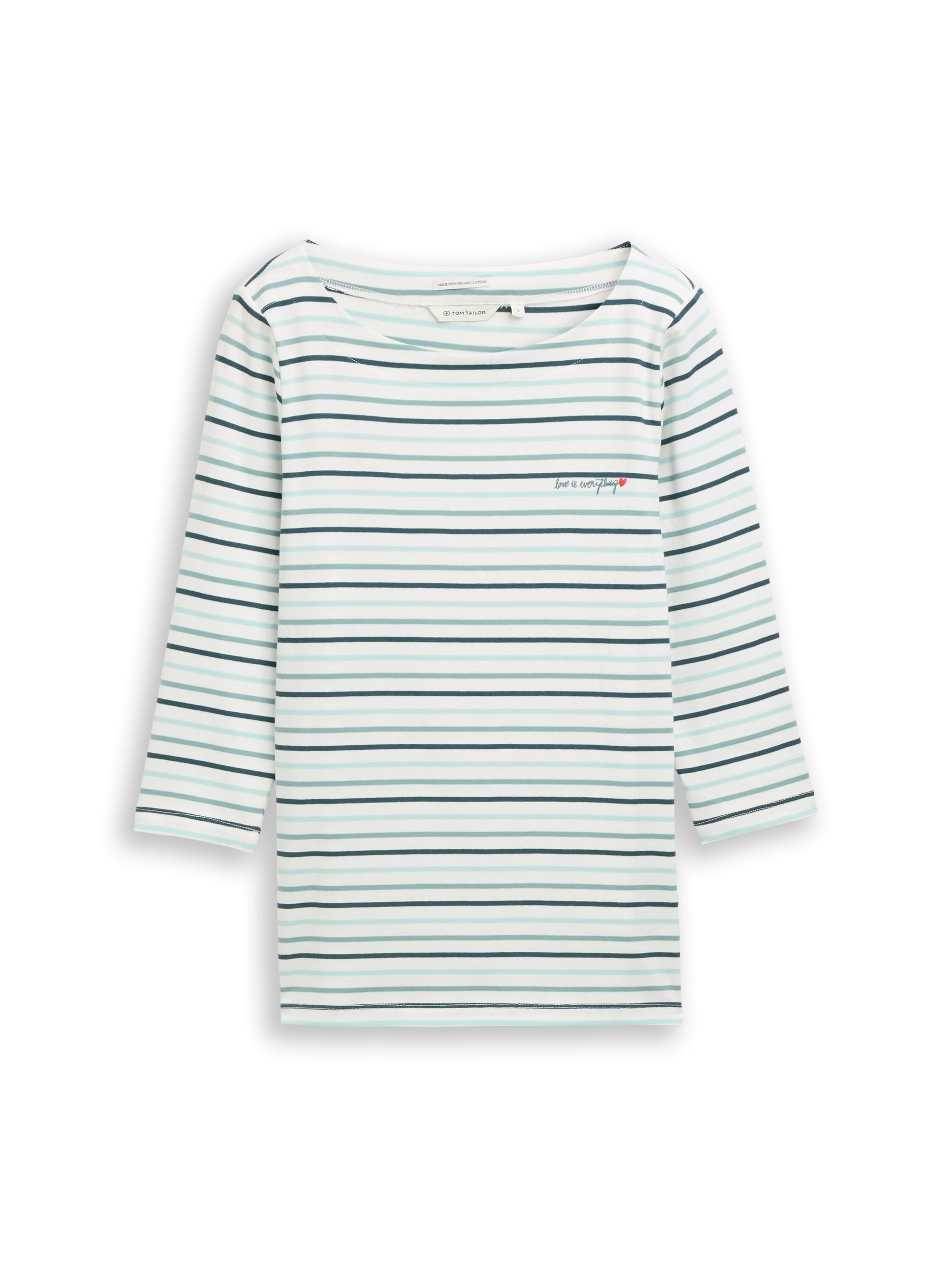 Gestreiftes Longsleeve mit U-Boot-Ausschnitt und 3/4-Arm. Mit femininem Print im Herz-Style auf der Brust. Aus einem Baumwollstoff mit Stretch-Anteil für ein angenehmes Tragegefühl.