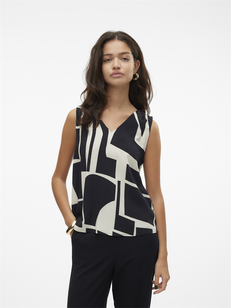 VMEASY JOY S/L V-NECK TOP WVN GA - 10301759