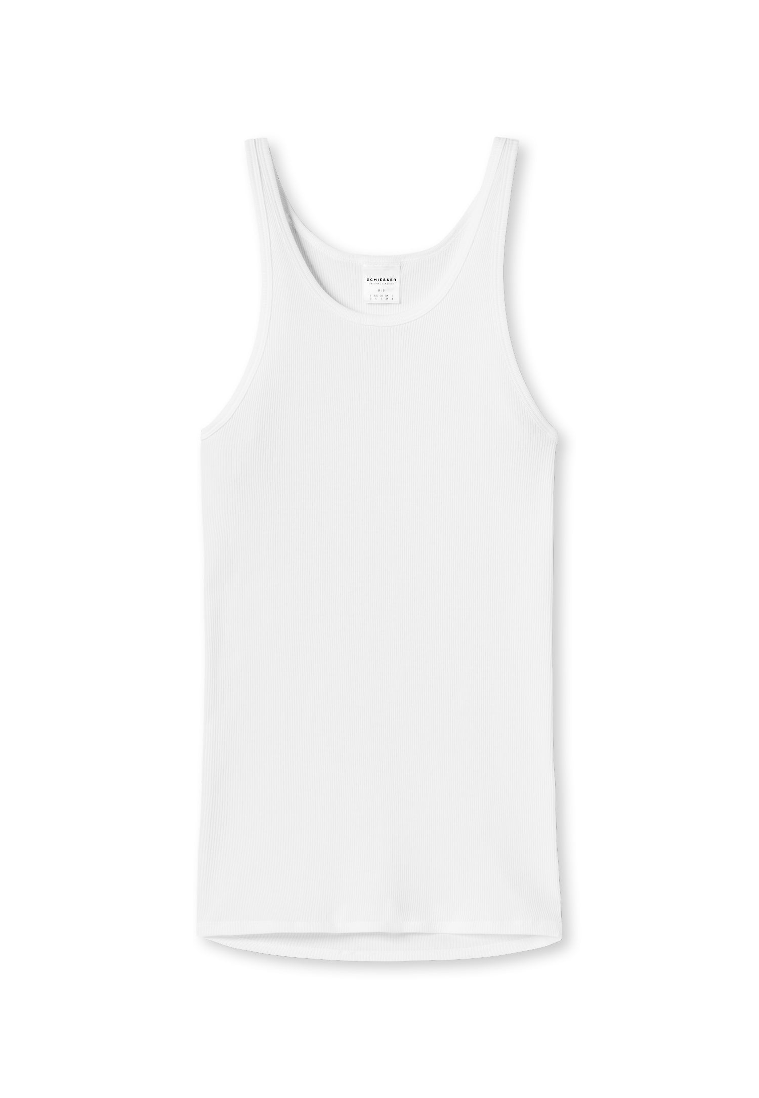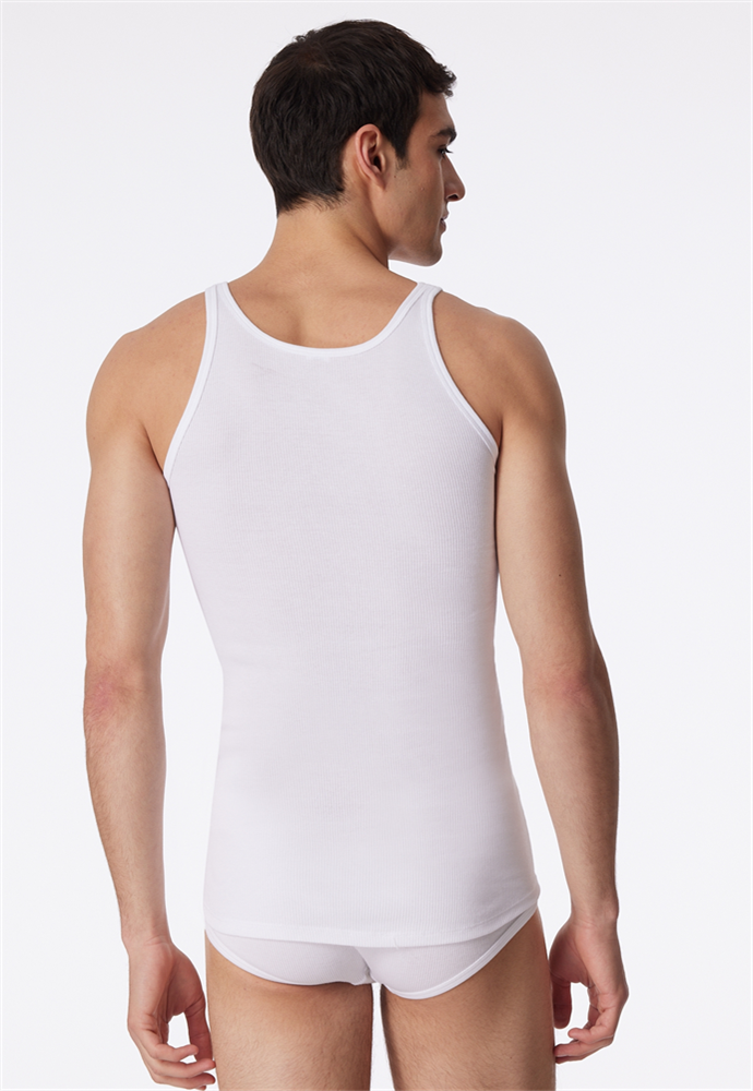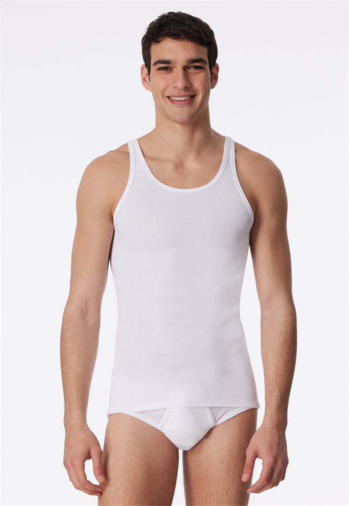 weißes Unterhemd für Herren, aus der SCHIESSER Serie Original Classics, besonders komfortabel, strapazierfähig und formstabil, vorteilhafter Schnitt mit etwas längerer Rückenpartie, aus 100 % feinster, zweifädiger Baumwolle, kochfest, in angenehm weicher, bewährter Doppelripp-Qualität