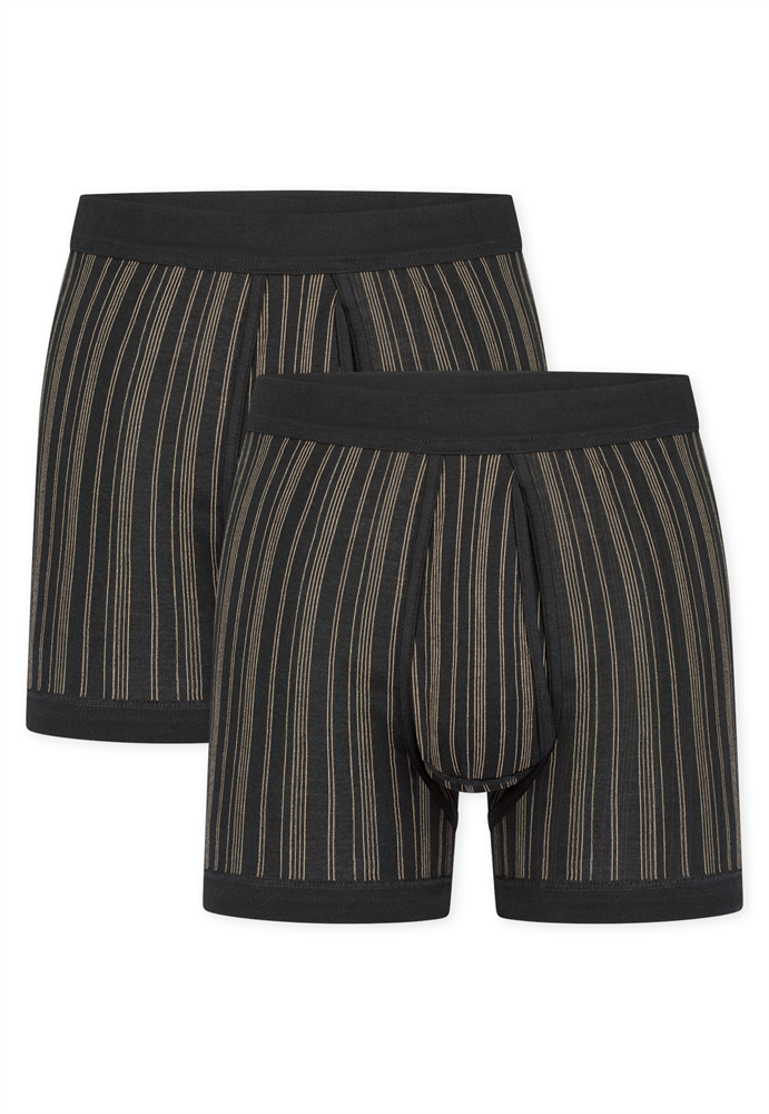 Maskuline Unterwäsche-Klassiker im vorteilhaften Doppelpack: Diese zwei kurzen Hosen für Herren sind die ideale Kombination aus stilvollem Streifen-Design und besonders langlebigem Material. 100% Baumwolle und der bequeme Softbund versprechen dabei höchsten Tragekomfort von der ersten Minute. Der Eingriff setzt ein unverzichtbares Detail. Das ideale Produkt für alle, die strapazierfähige Tagwäsche in bester SCHIESSER-Qualität schätzen!